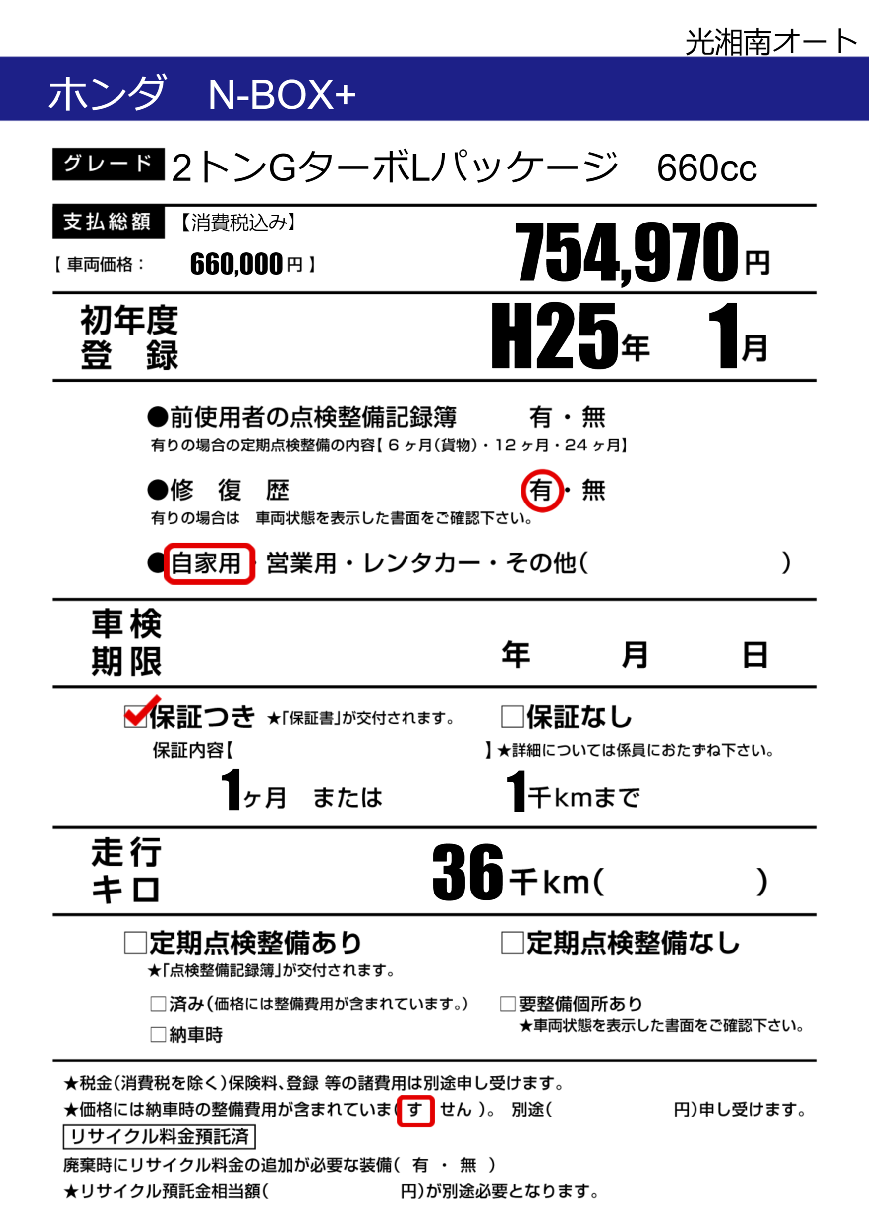 | 車名 | ホンダ N-BOX+ | グレード ミッション 排気量 |