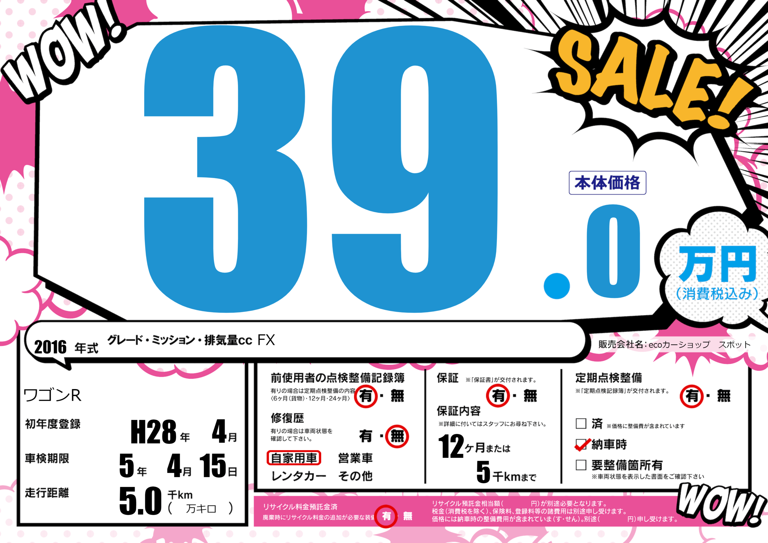 保証付き 保証内容(---) 12ヶ月または(5)千kmまで |