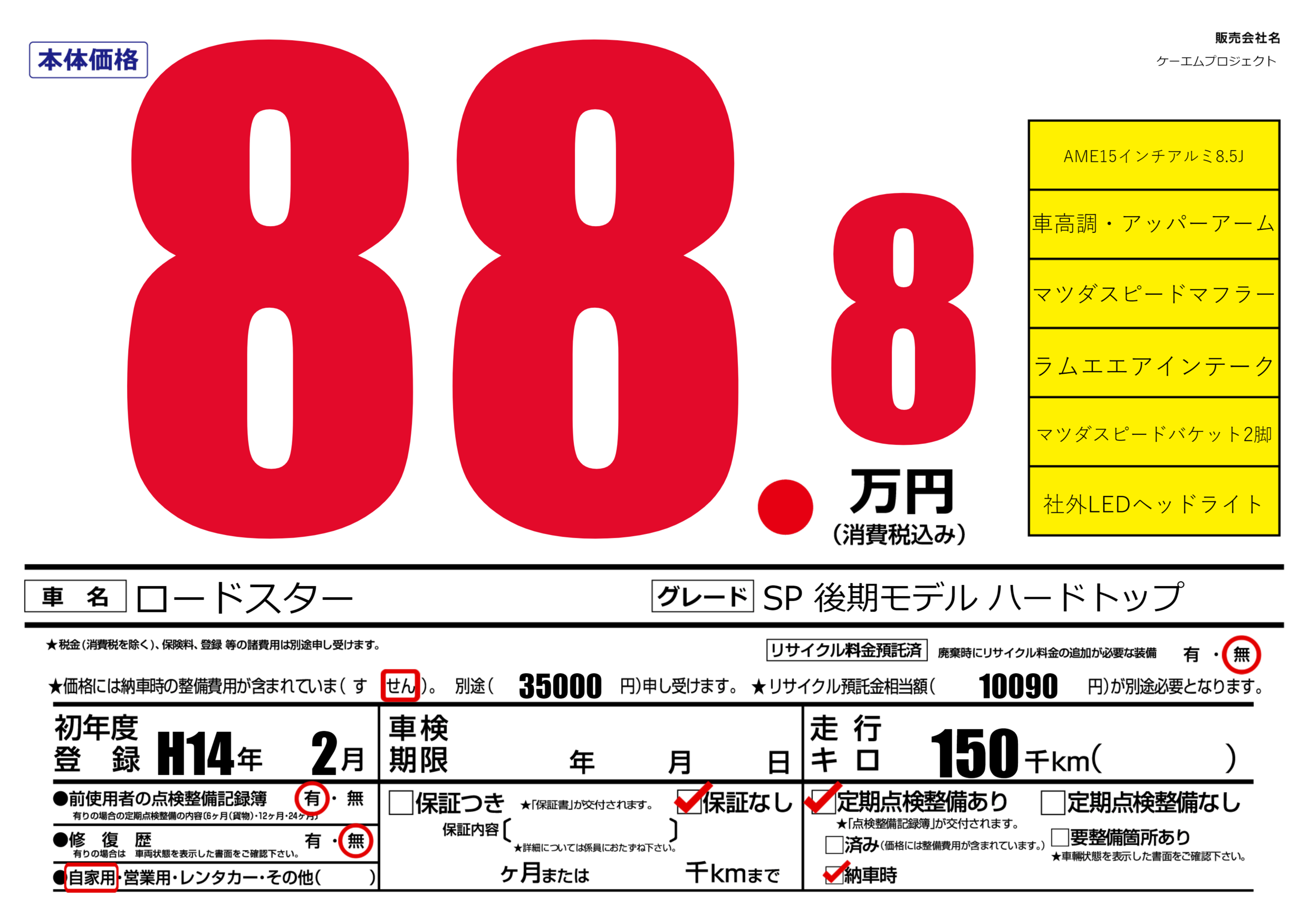 ケーエムプロジェクトの展示車