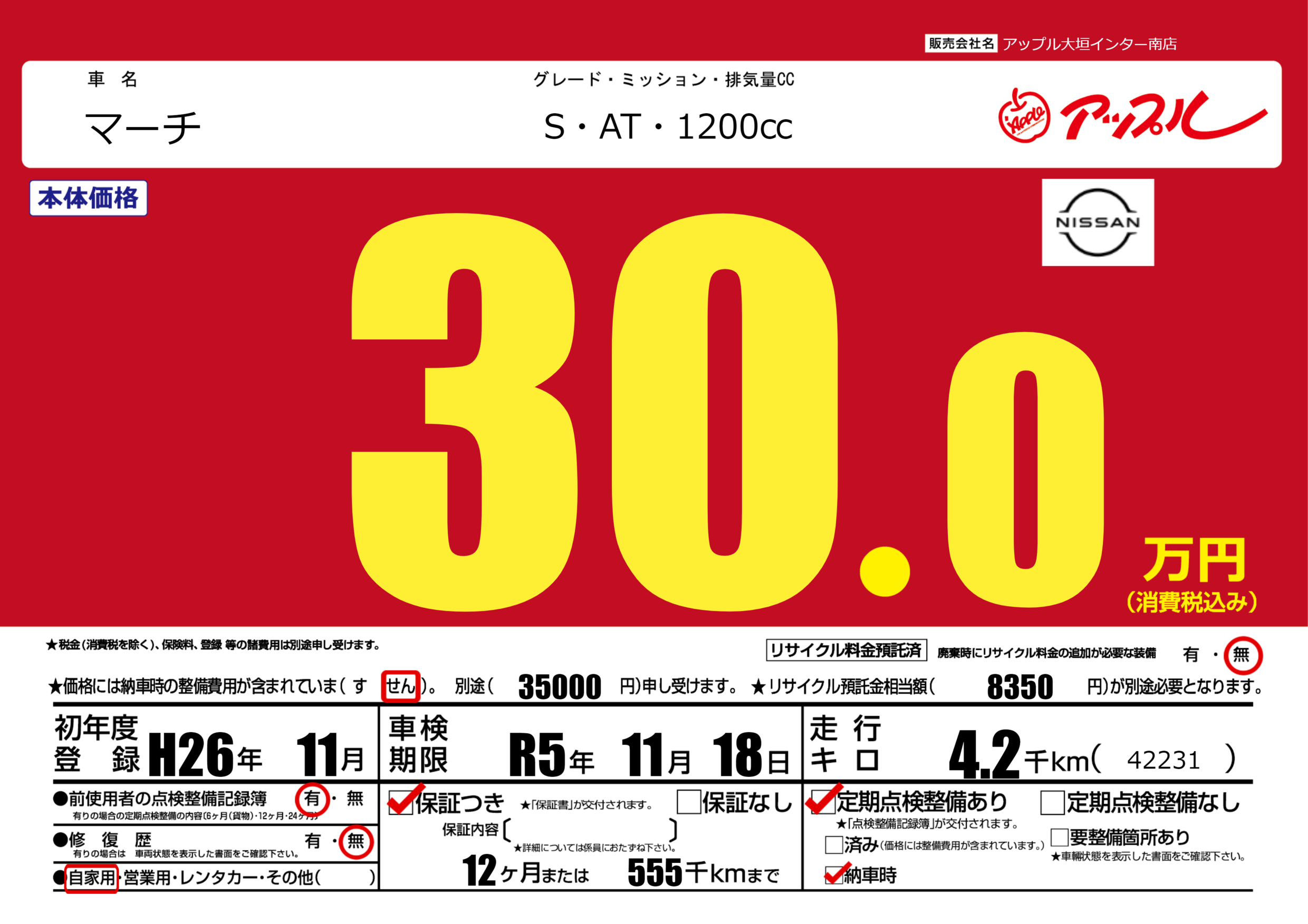 | 車名 | マーチ | グレード ミッション 排気量 |