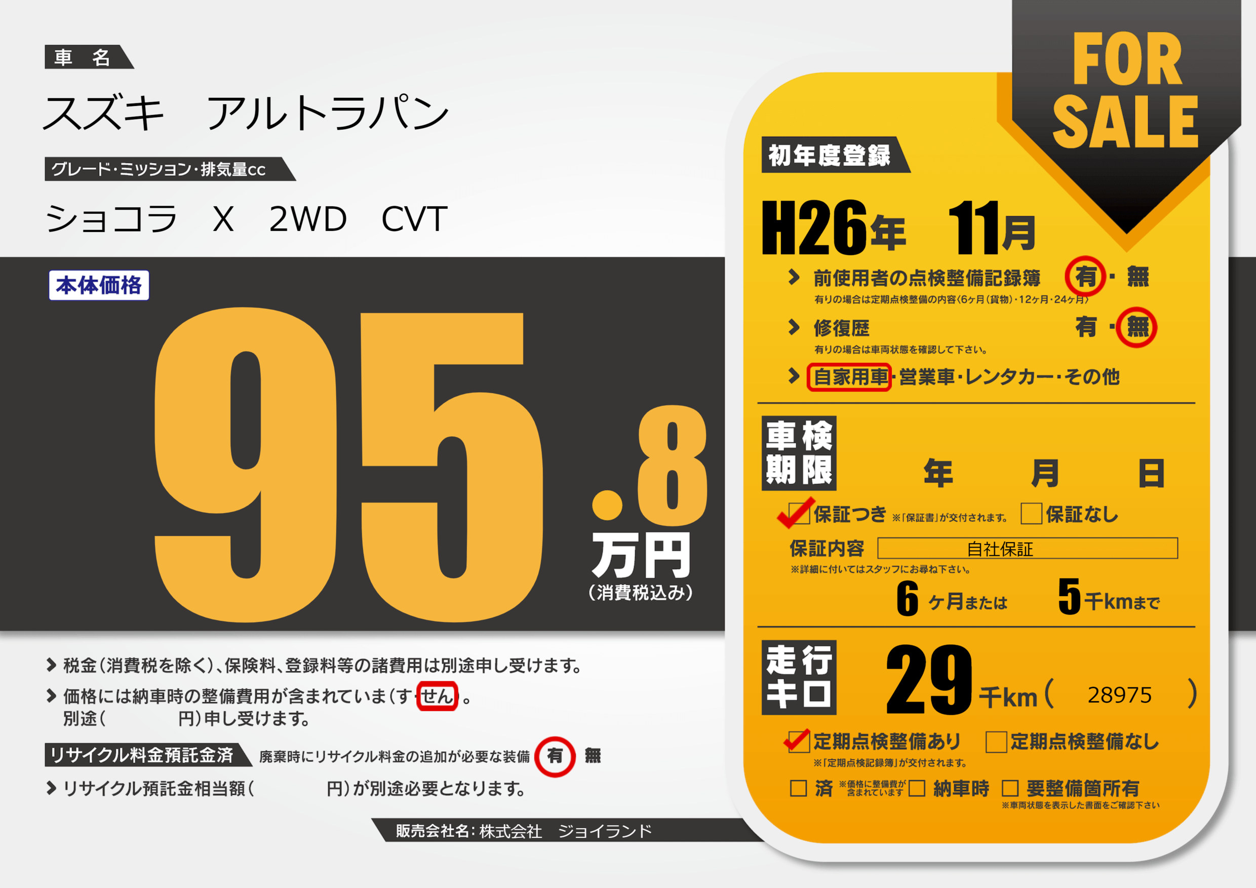 保証付き 保証内容( 自社保証) 6ヶ月または5千km |