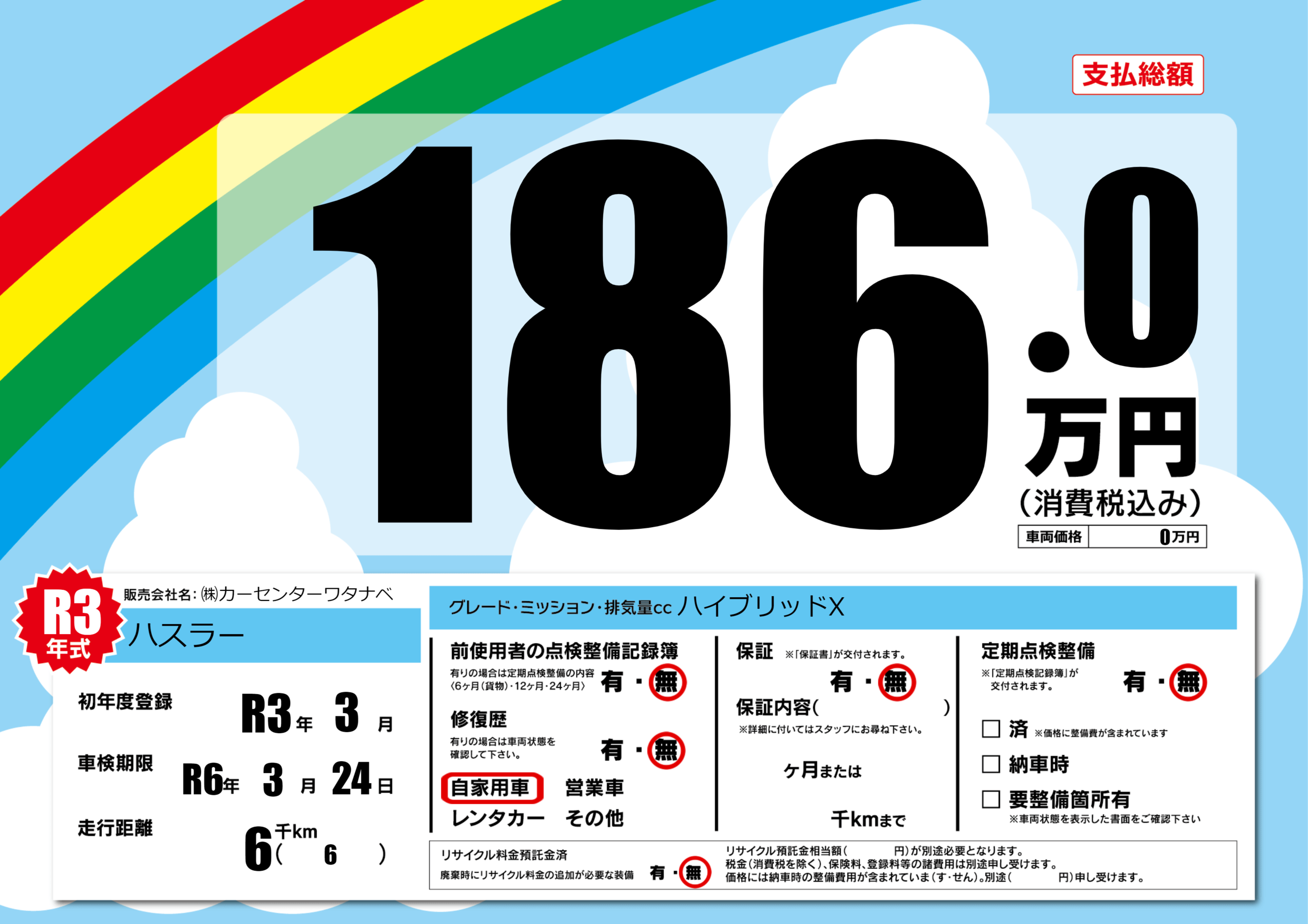 | 車名 | ハスラー | グレード ミッション 排気量 |