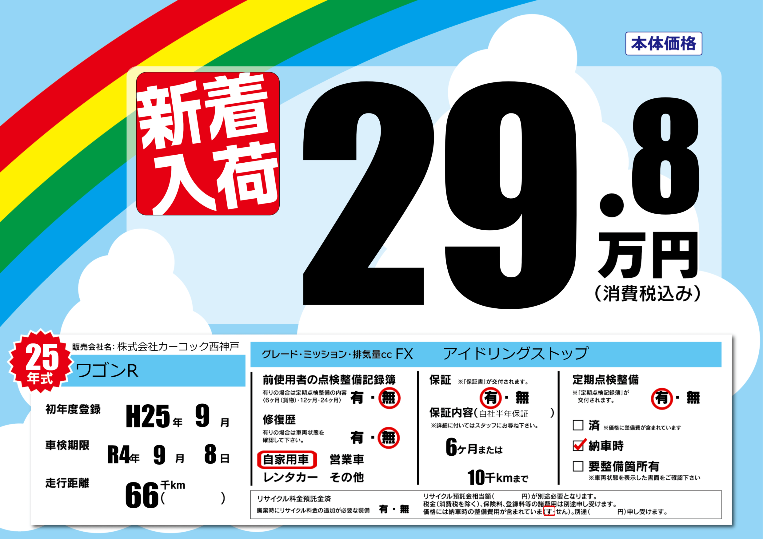 保証付き 保証内容(自社半年保証) 6ヶ月または(10)千kmまで |