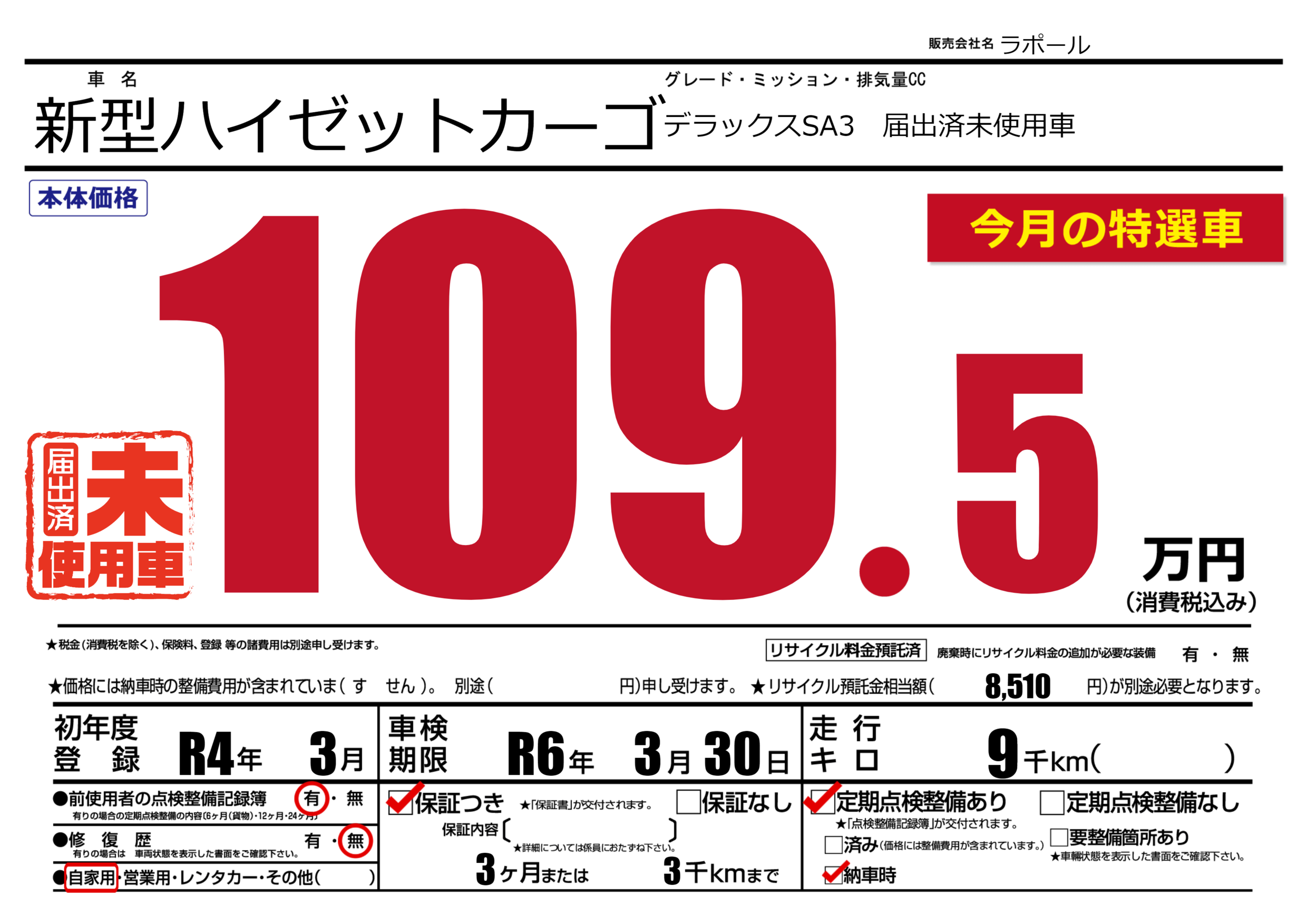 保証付き 保証内容(---) 3ヶ月または(3)千kmまで |