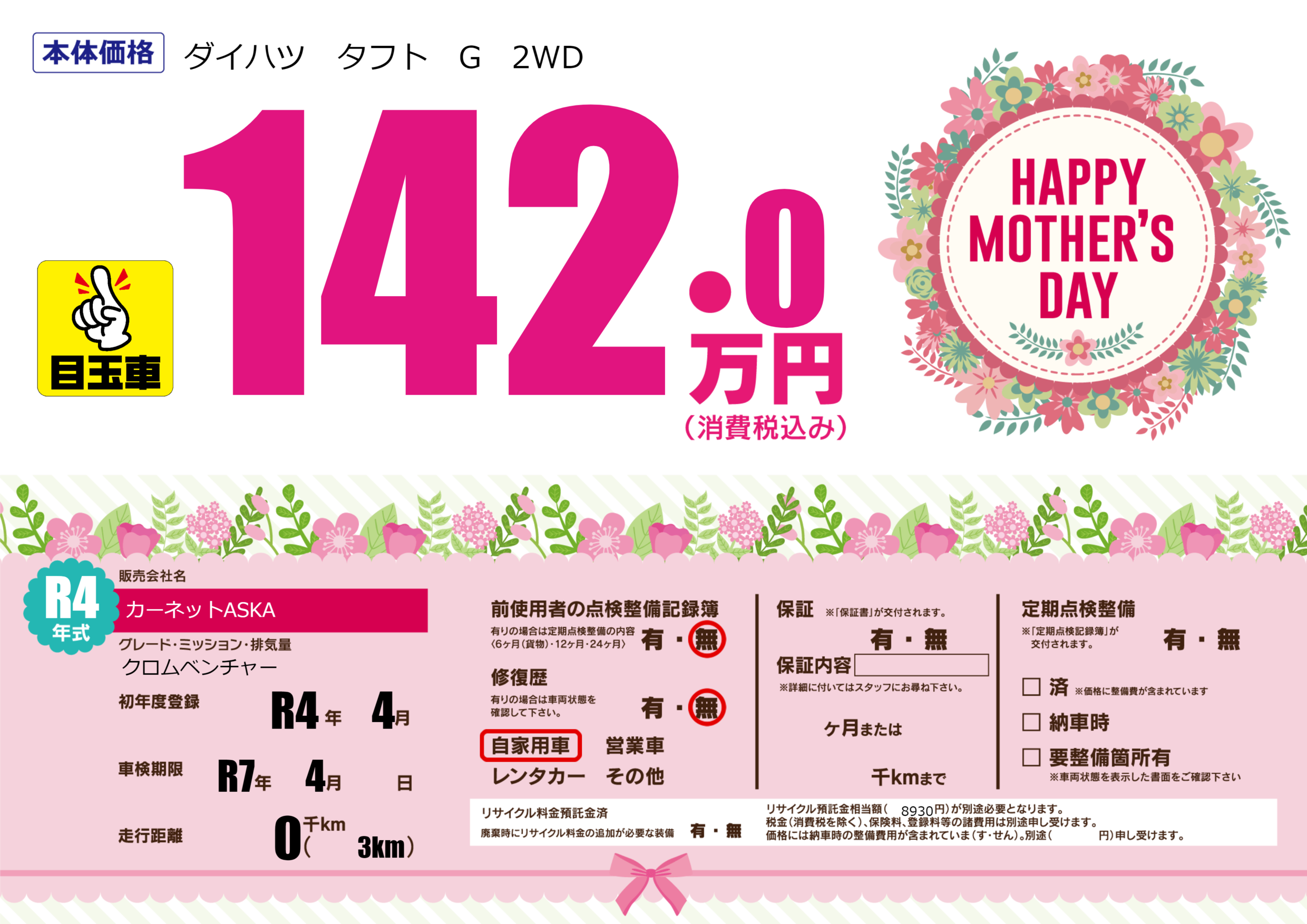 なし | 車検制限 | R7年4月---月 |