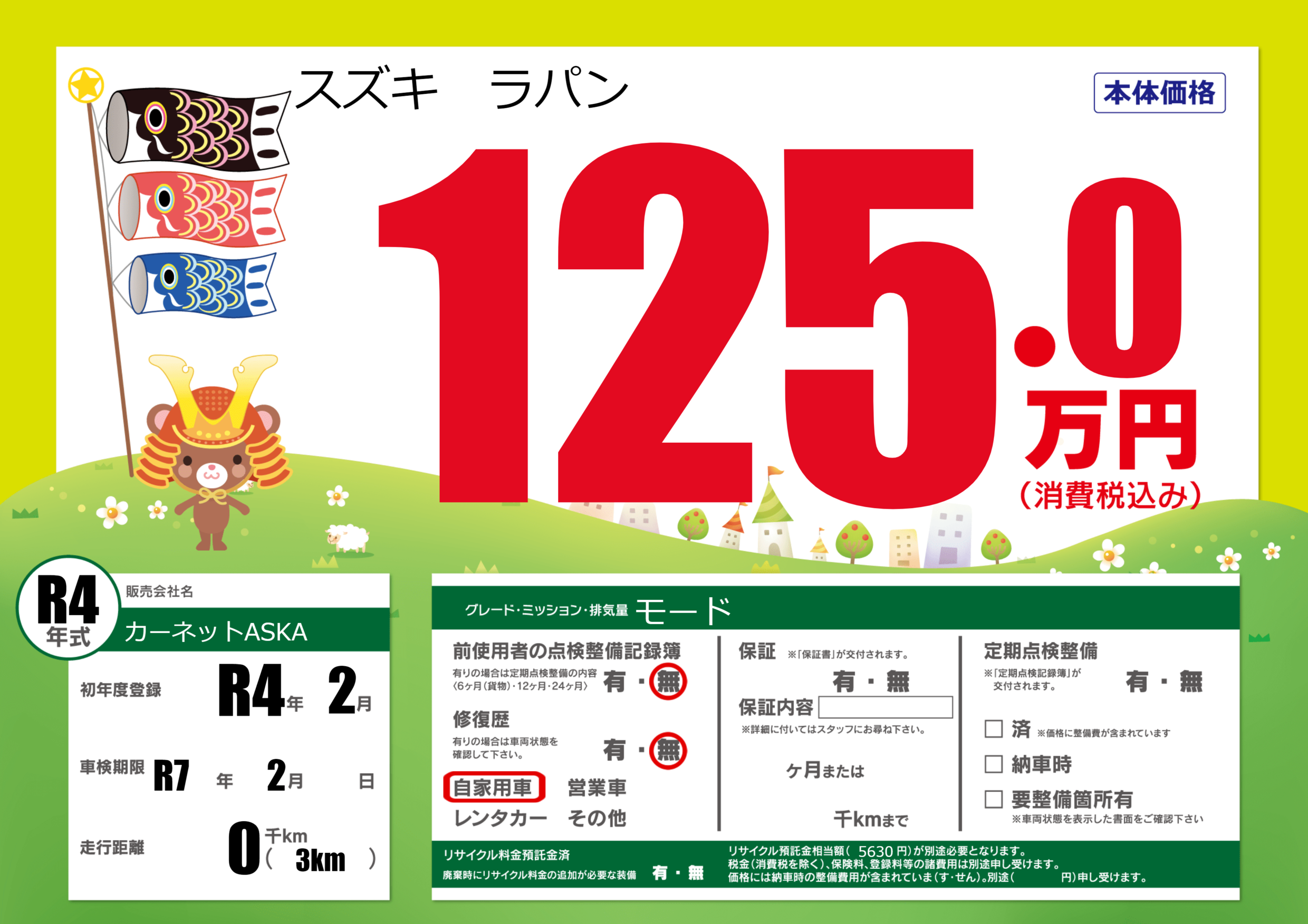 | 車名 | スズキ ラパン | グレード ミッション 排気量 |