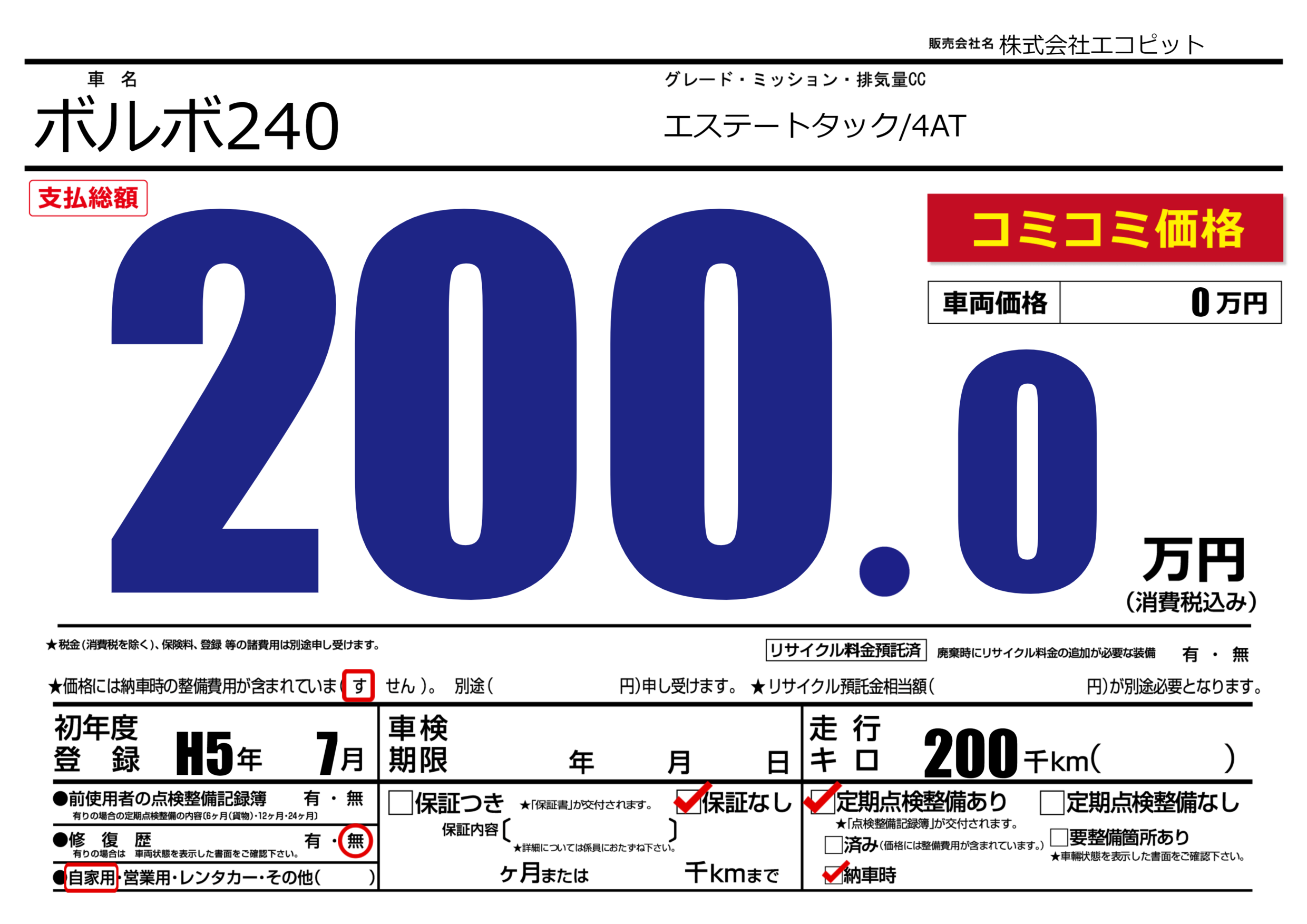 | 車名 | ボルボ240 | グレード ミッション 排気量 |