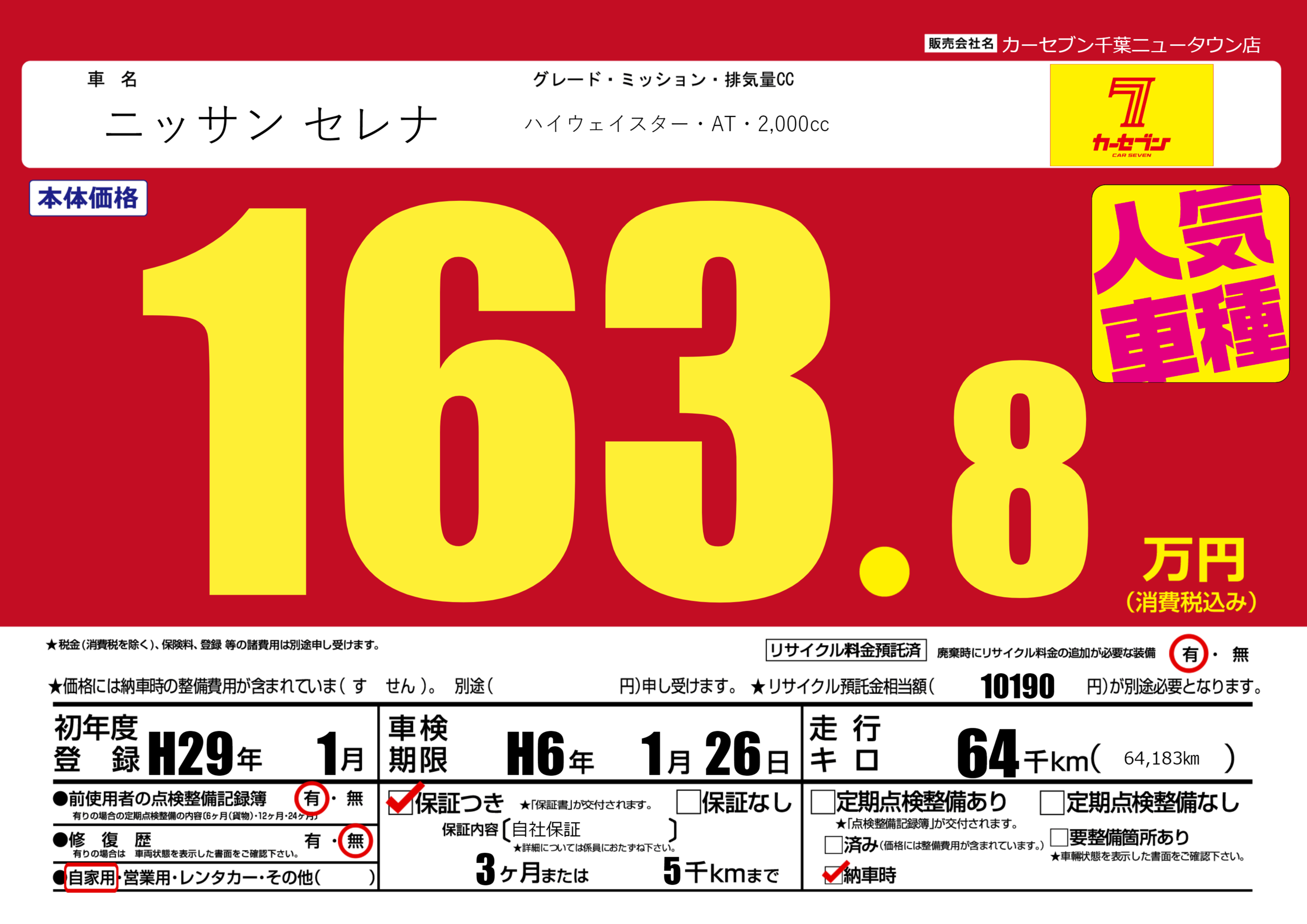 保証付き 保証内容(自社保証) 3ヶ月または(5)千kmまで |