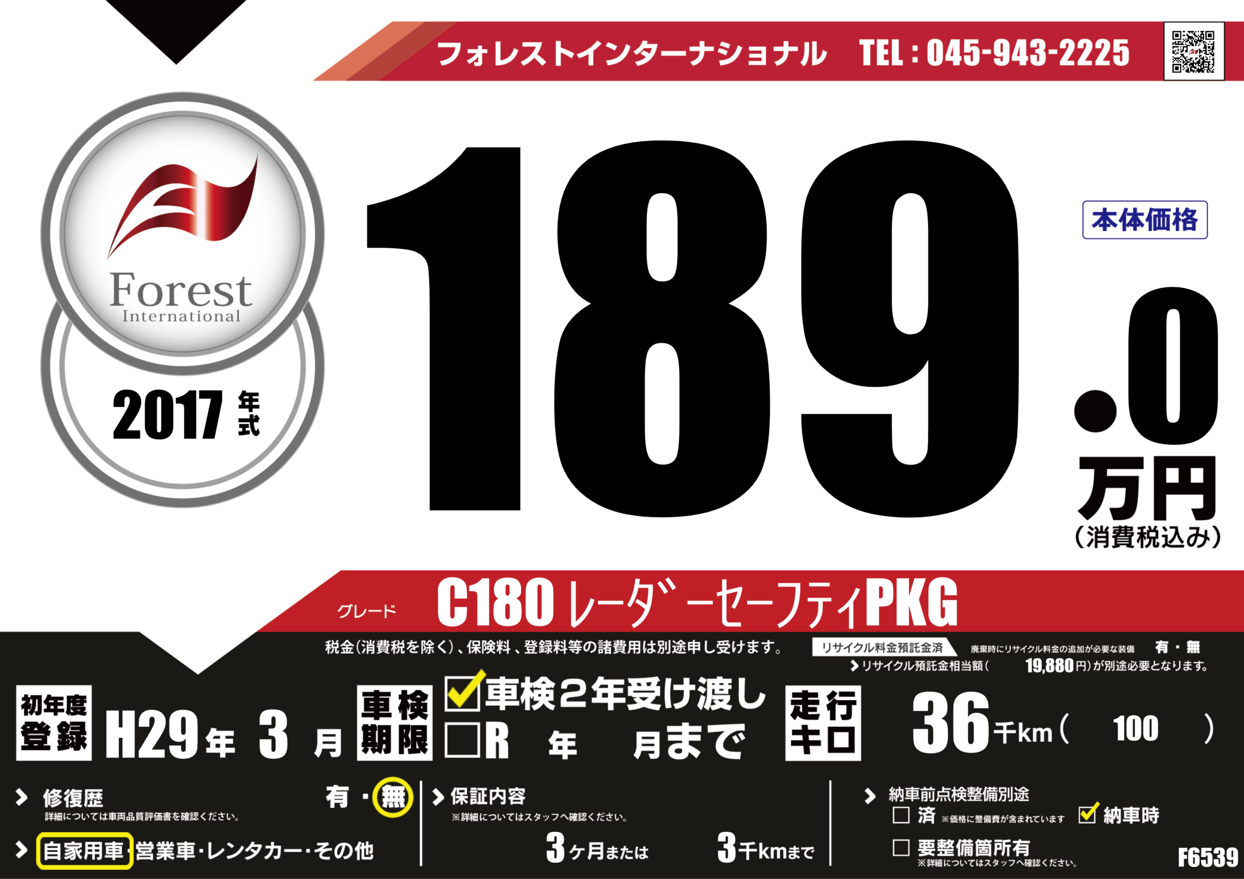 | 走行キロ | 3.6万km | 初年度登録 | H29年3月 |