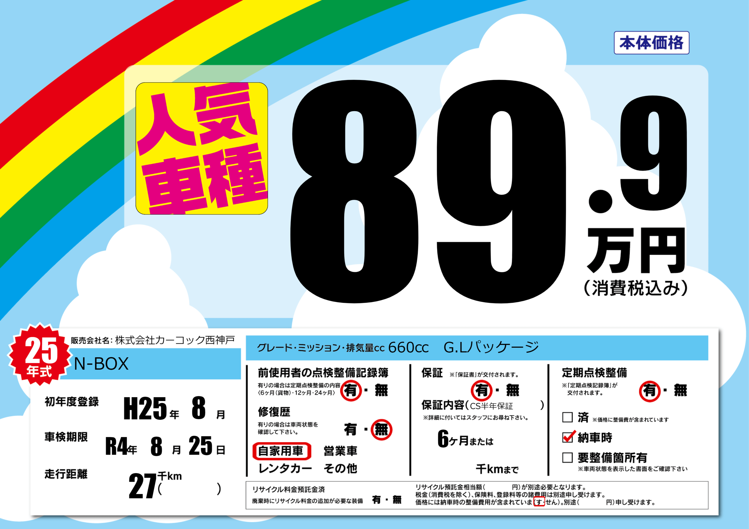 | 車名 | N-BOX | グレード ミッション 排気量 |