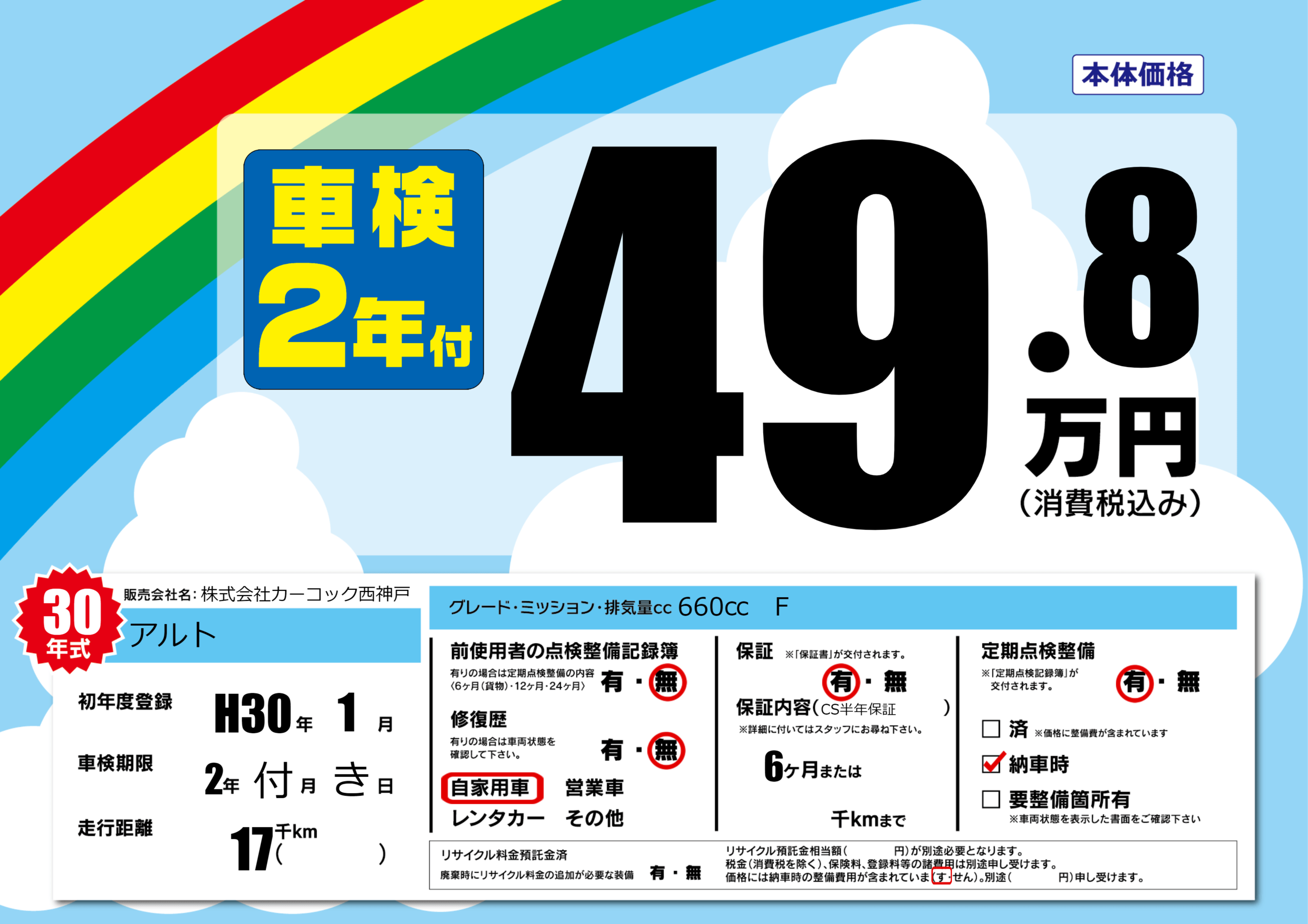 | 定期点検整備 | 定期点検整備あり 納車時あり | ||