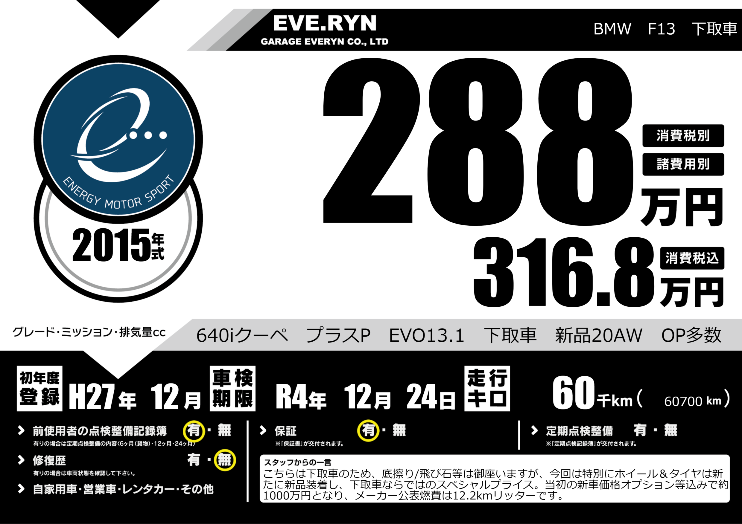 640iクーペ プラスP EVO13.1 下取車 新品20AW OP多数 |