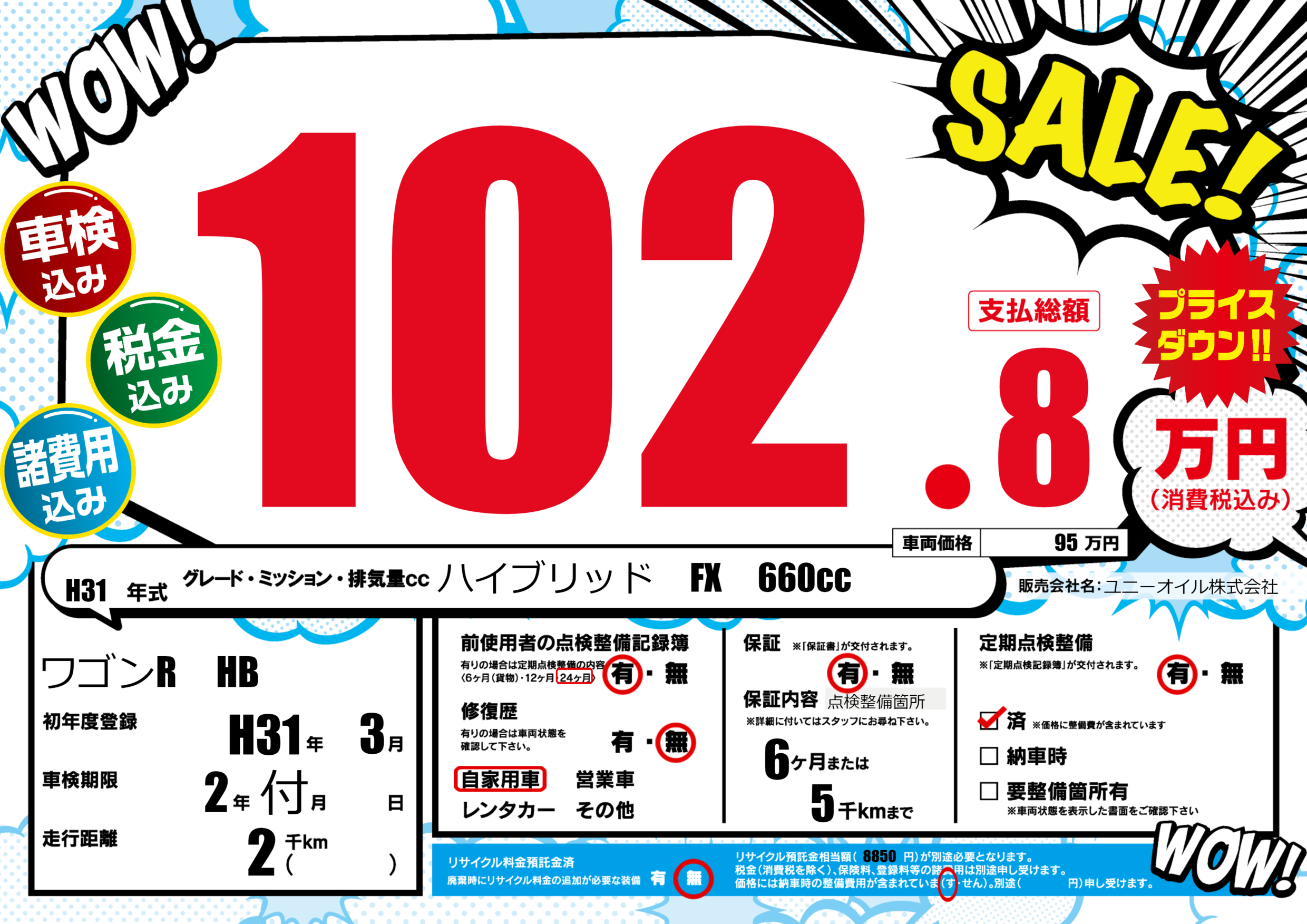 | 定期点検整備 | 定期点検整備あり 定期点検整備済み | ||