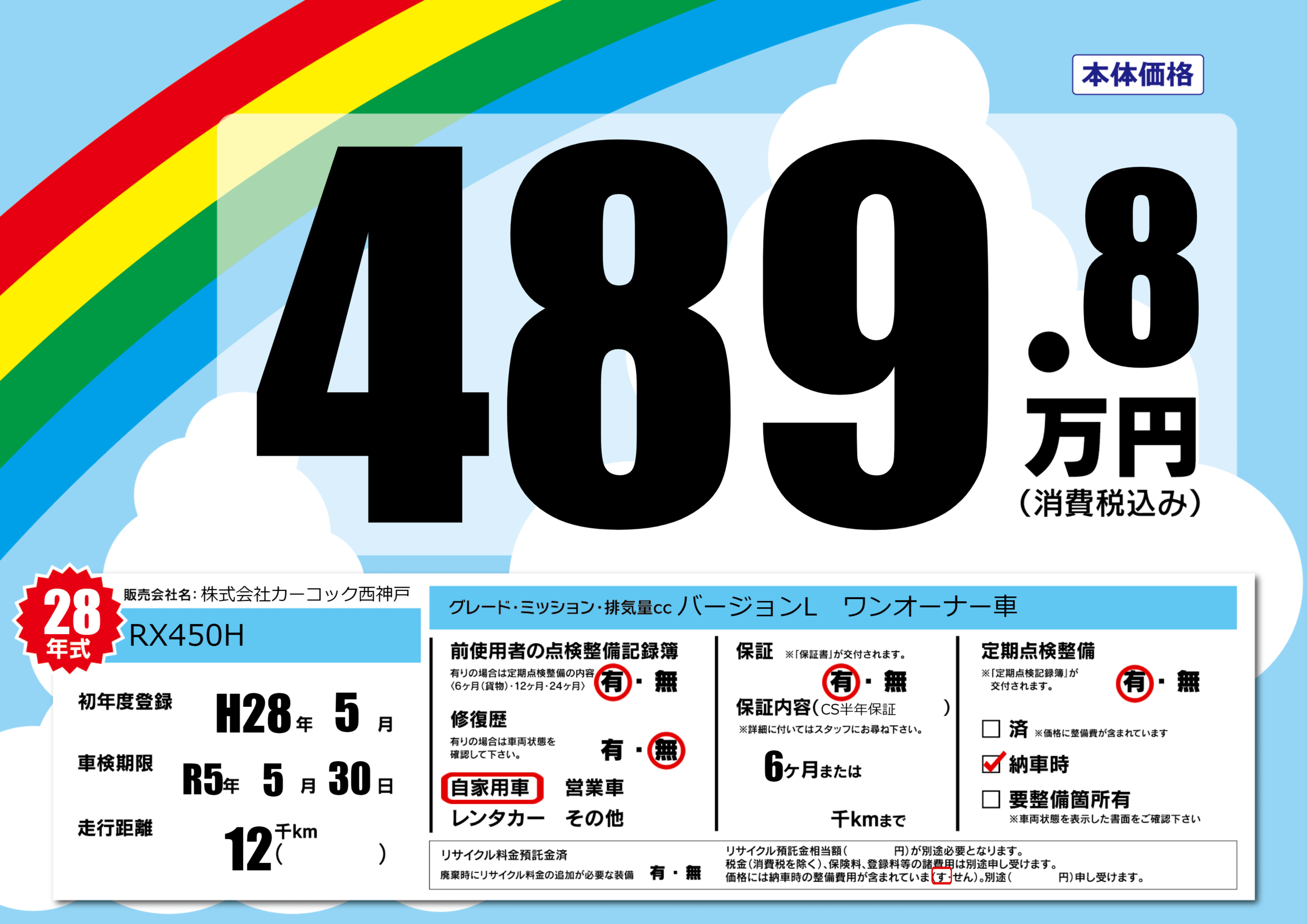| 車名 | RX450H | グレード ミッション 排気量 |