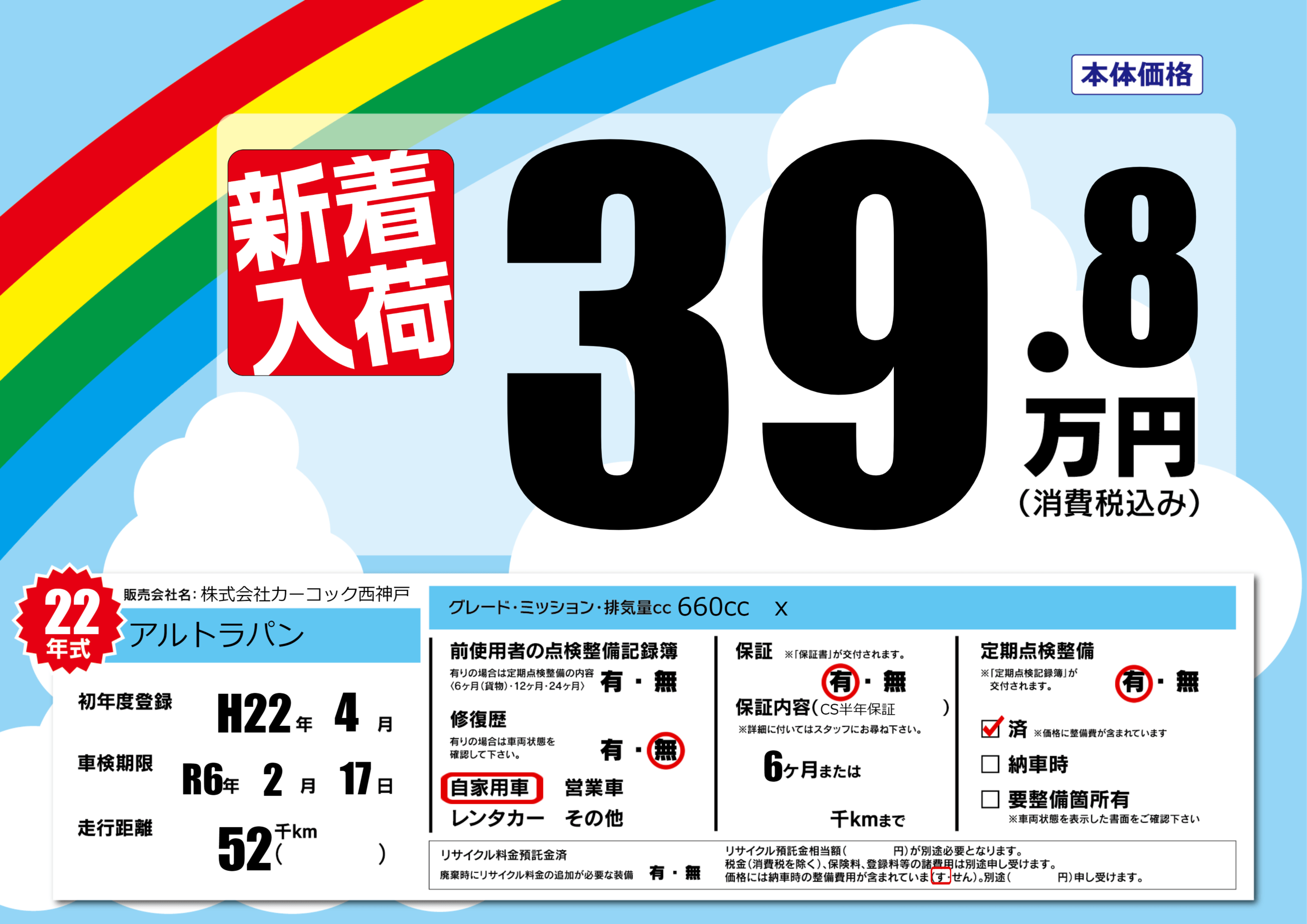 | 定期点検整備 | 定期点検整備あり 定期点検整備済み | ||