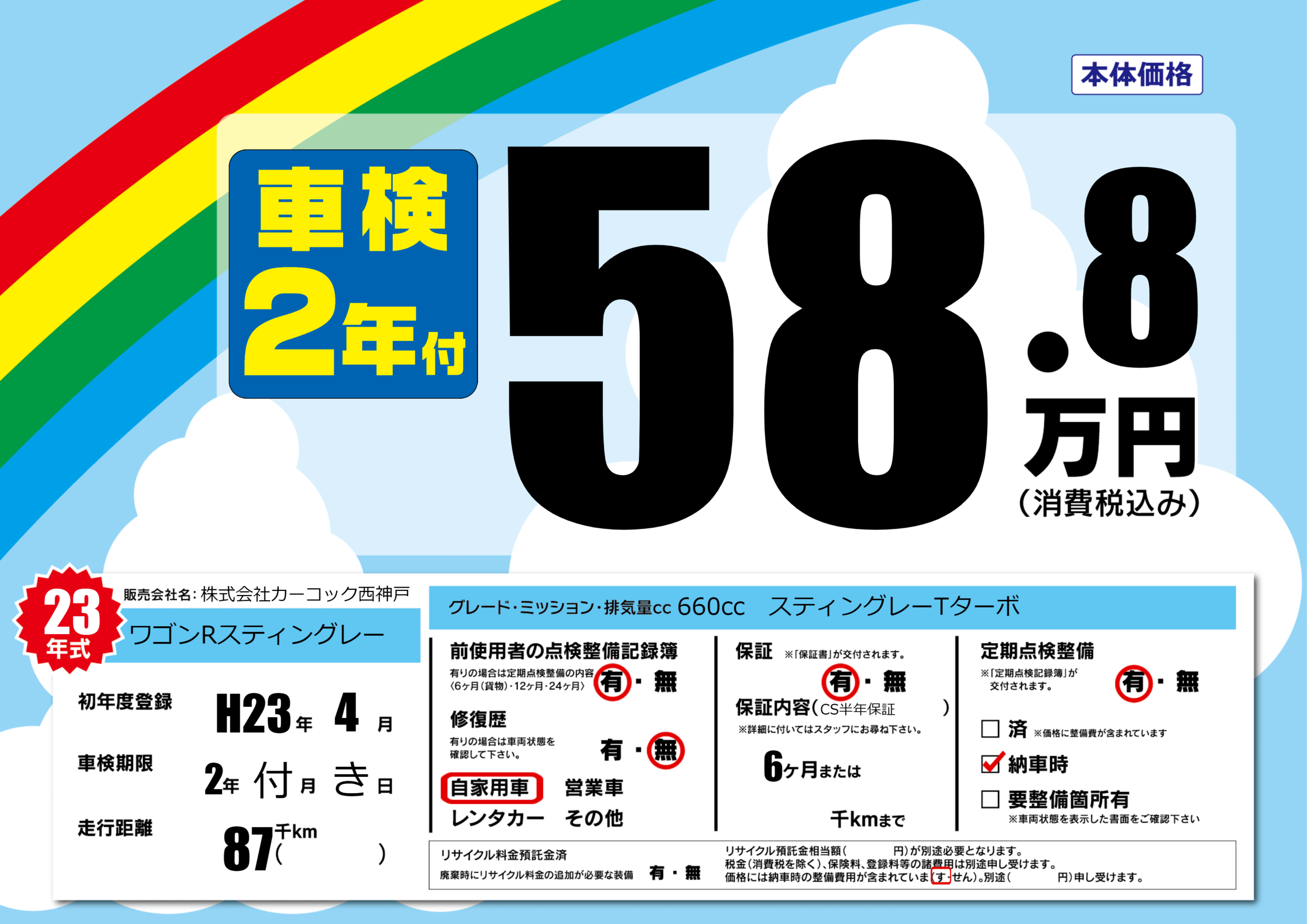 | 走行キロ | 8.7万km | 初年度登録 | H23年4月 |