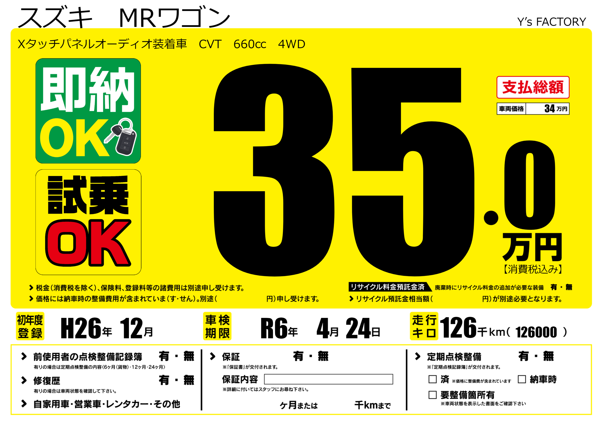 | 車検制限 | R6年 4月 24日 | ||