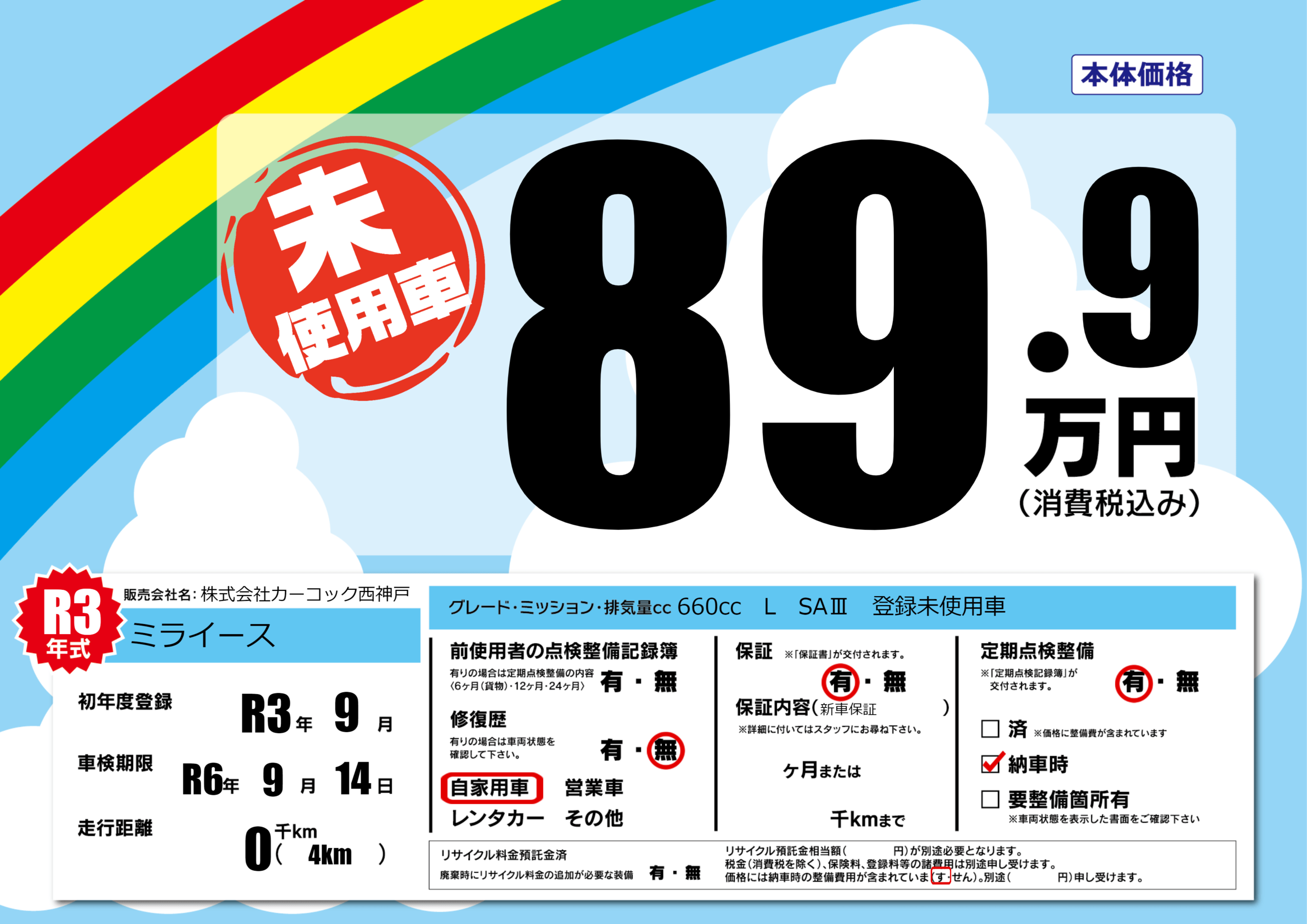 | 走行キロ | - | 初年度登録 | R3年9月 |