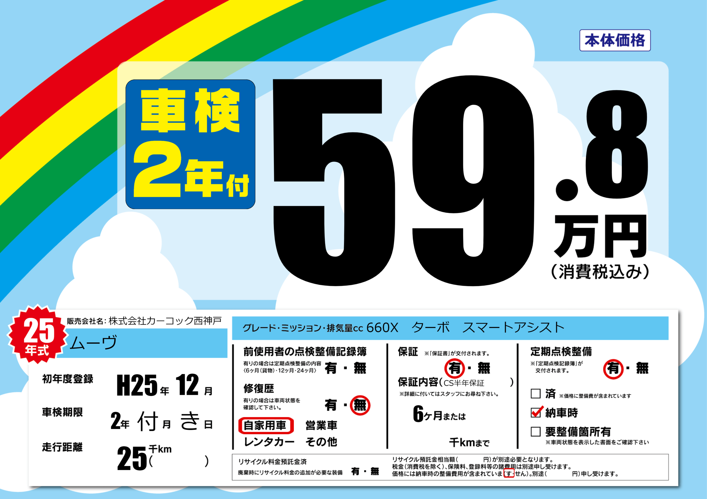 | 定期点検整備 | 定期点検整備あり 納車時あり | ||