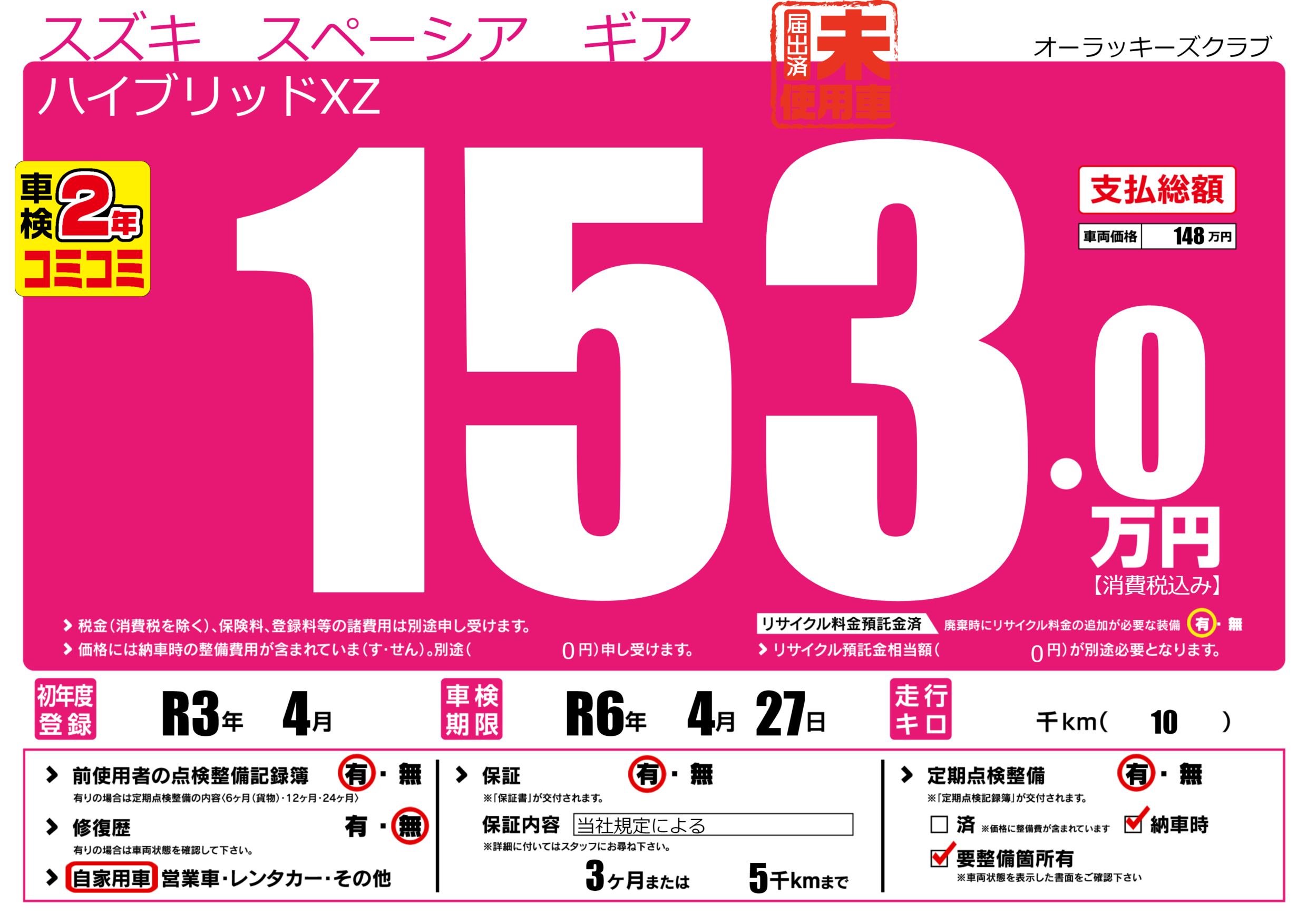 | 走行キロ | - | 初年度登録 | R3年4月 |