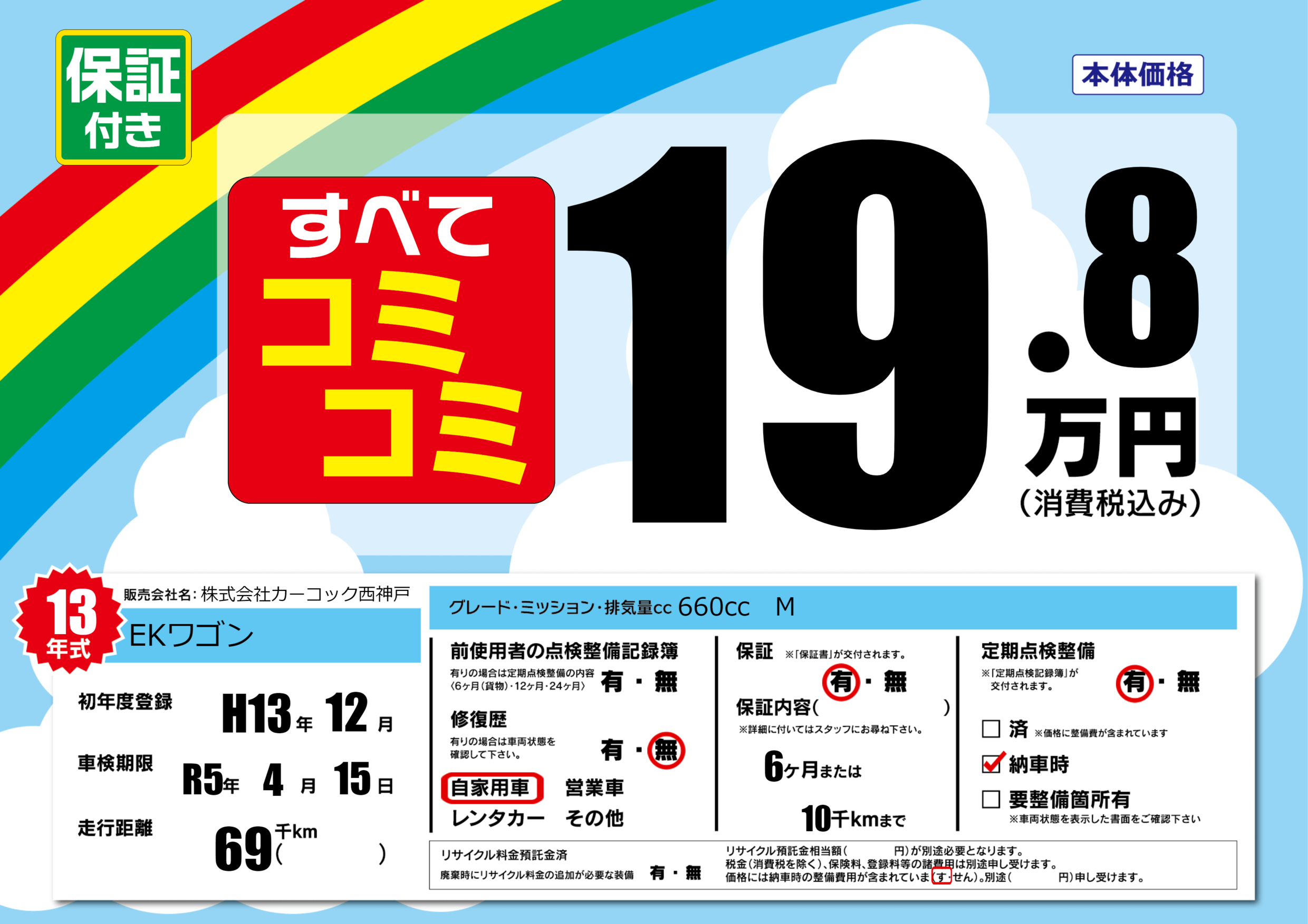 | 定期点検整備 | 定期点検整備あり 納車時あり | ||