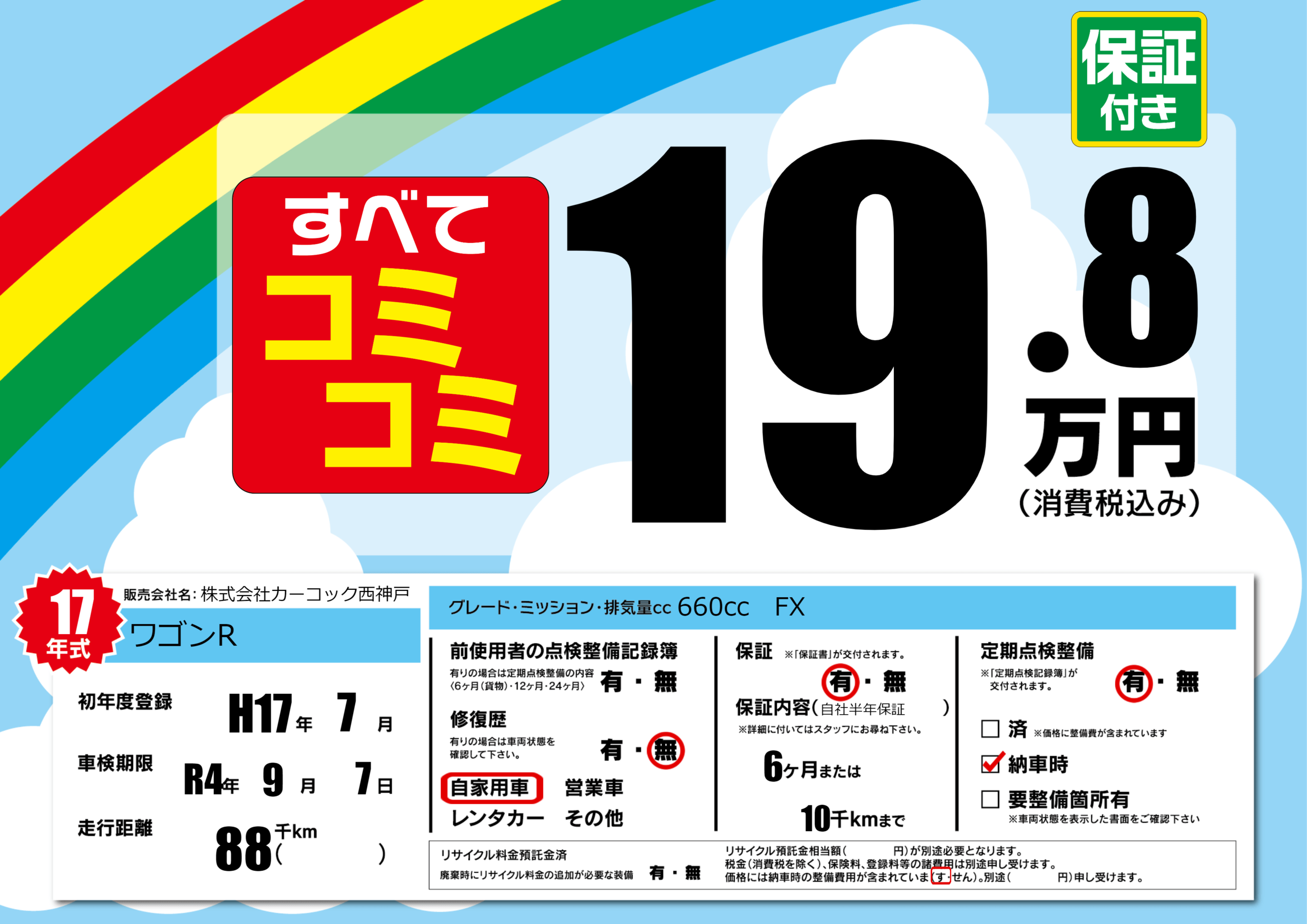 保証付き 保証内容(自社半年保証) 6ヶ月または(10)千kmまで |