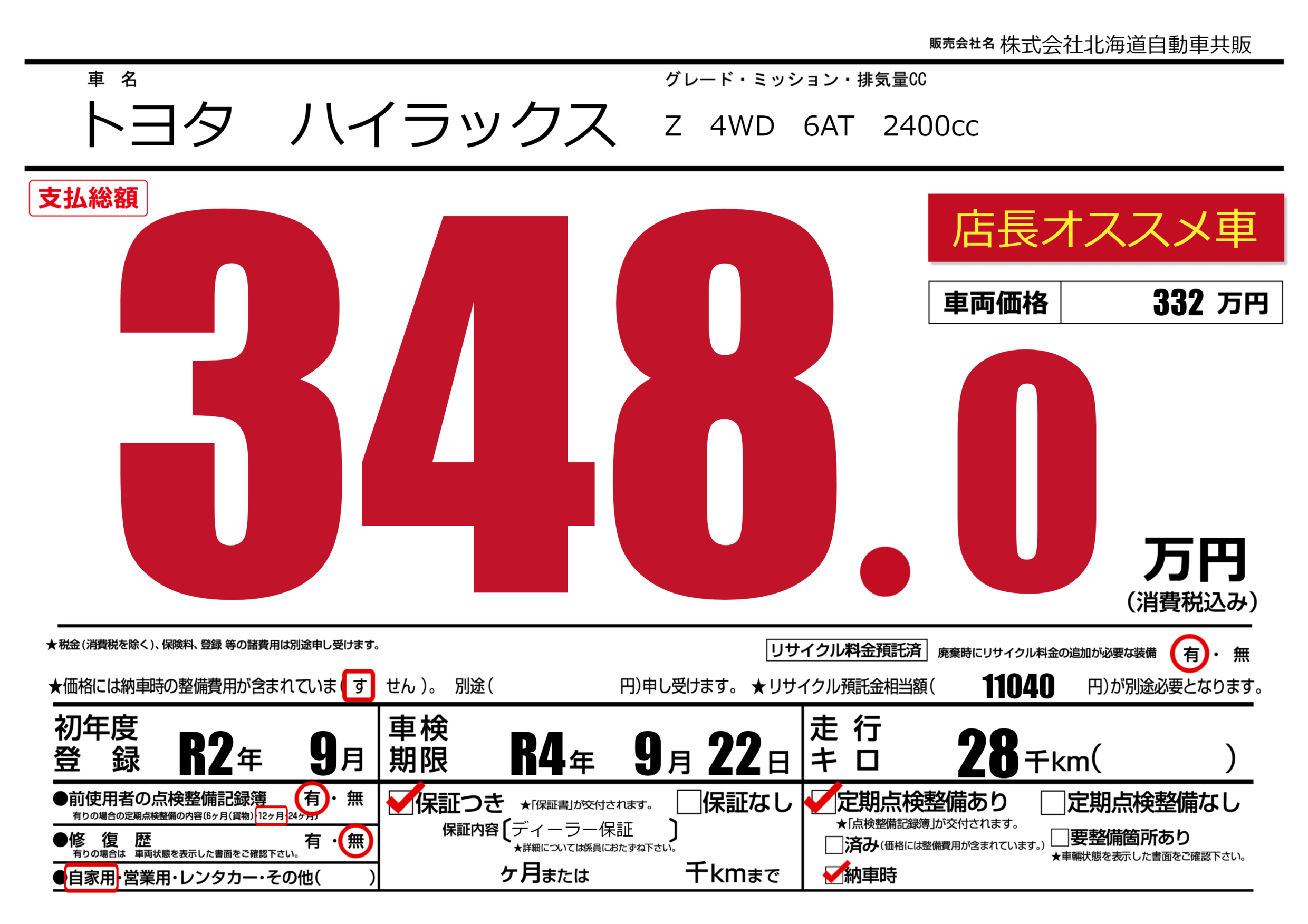 | 車検制限 | R4年 9月 22日 | ||