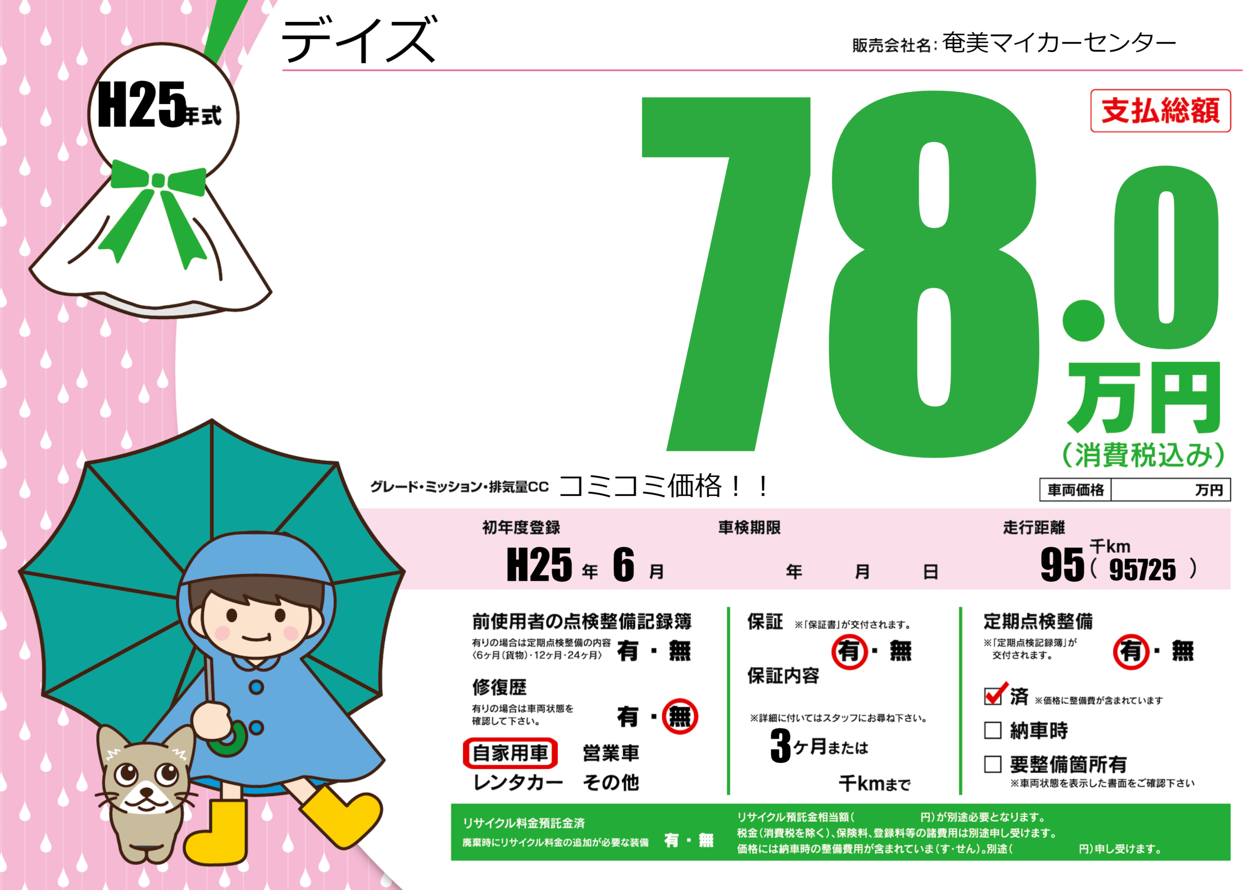 | 定期点検整備 | 定期点検整備あり 定期点検整備済み | ||
