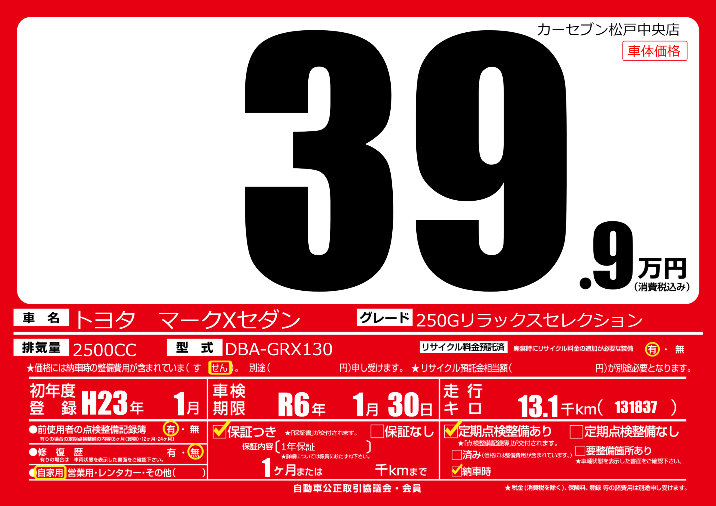 なし | 車検制限 | R6年1月30月 |