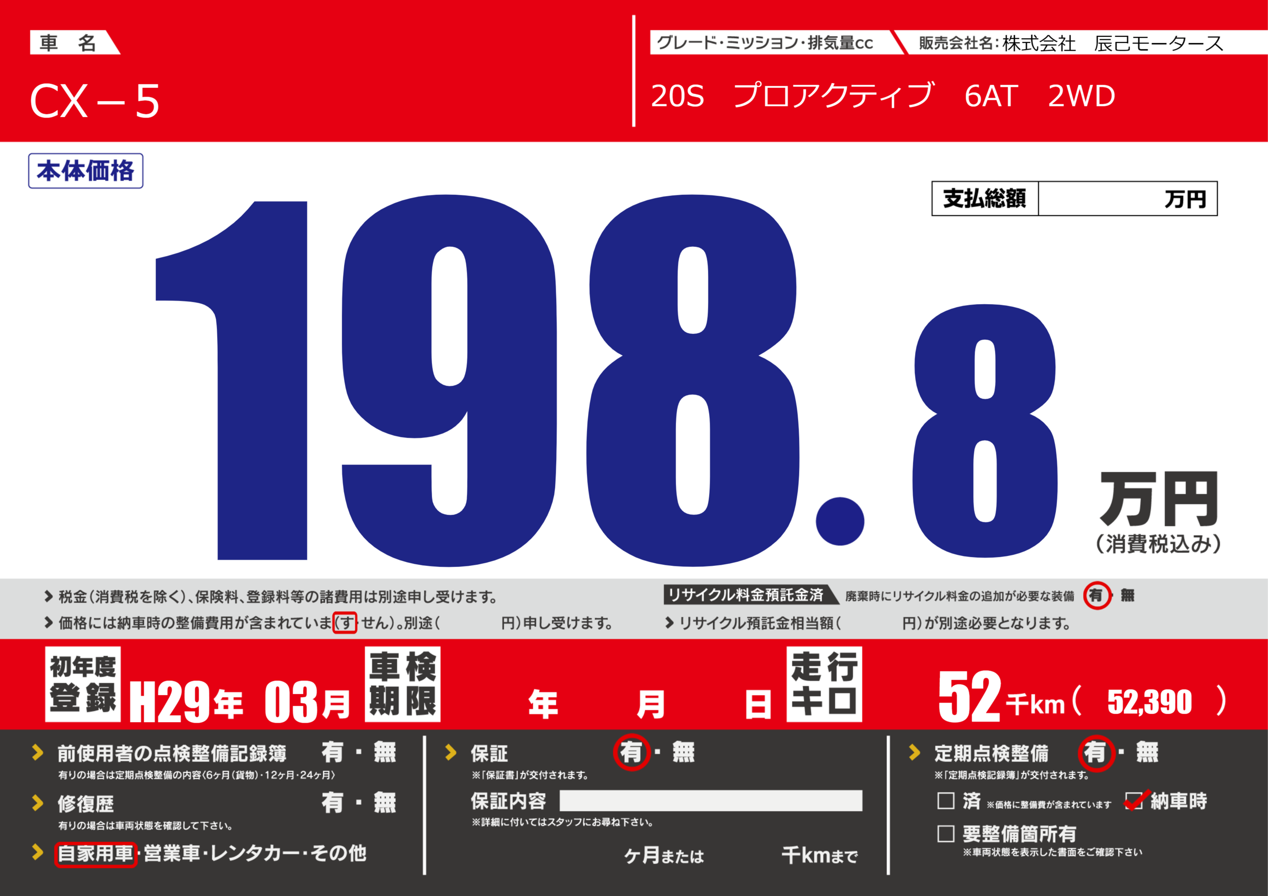 | 車名 | CX-5 | グレード ミッション 排気量 |