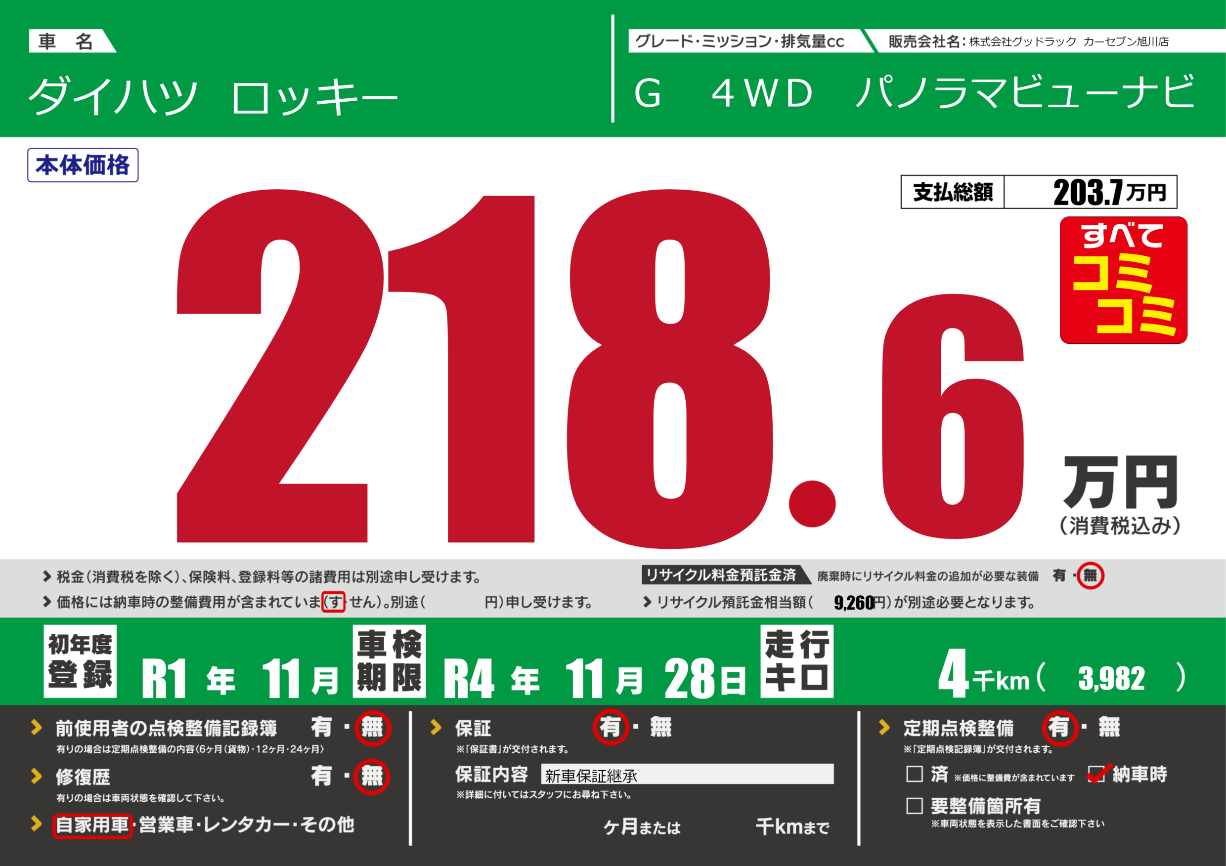 あり | 車検制限 | R4年11月28月 |