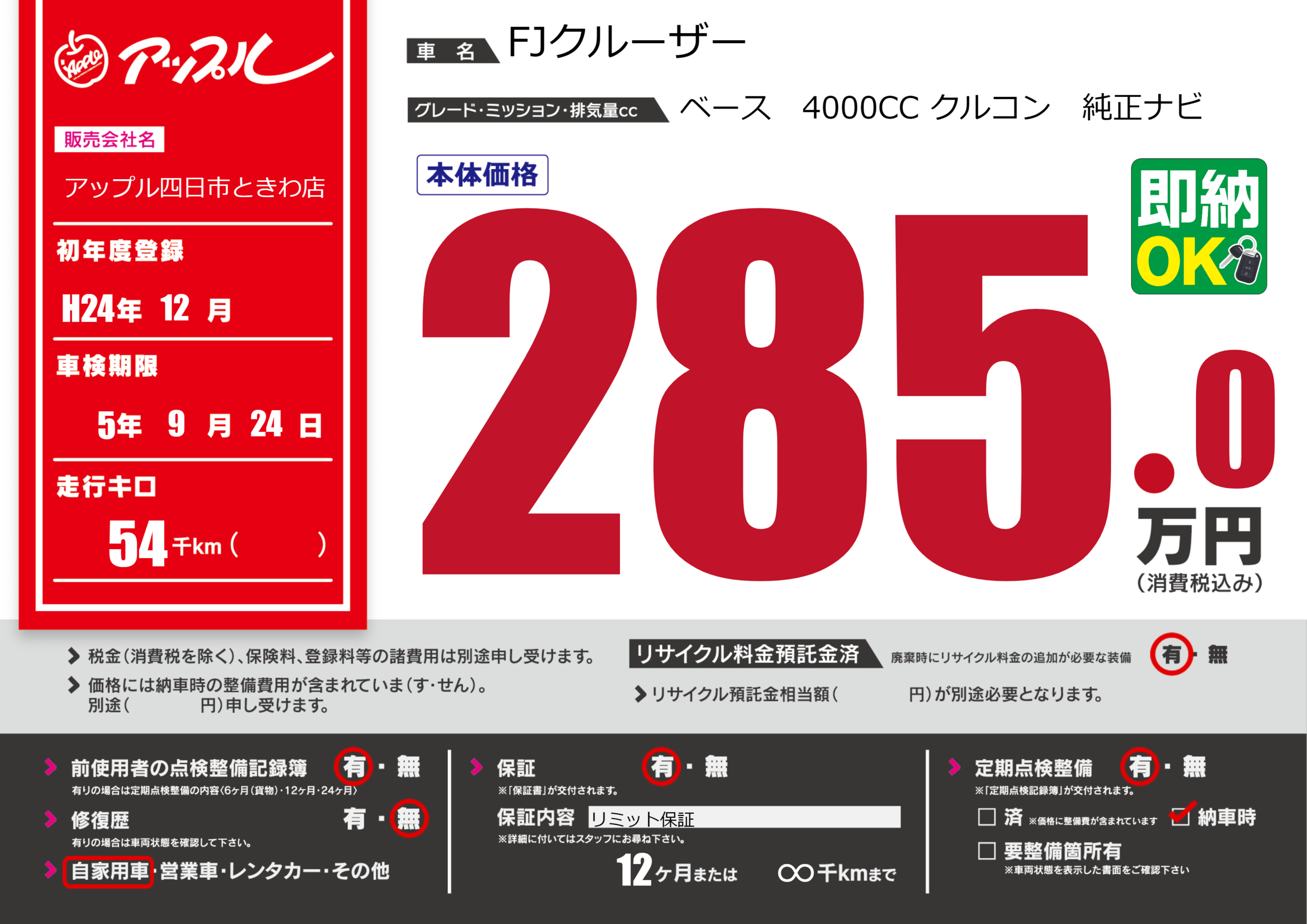 なし | 車検制限 | 5年9月24月 |
