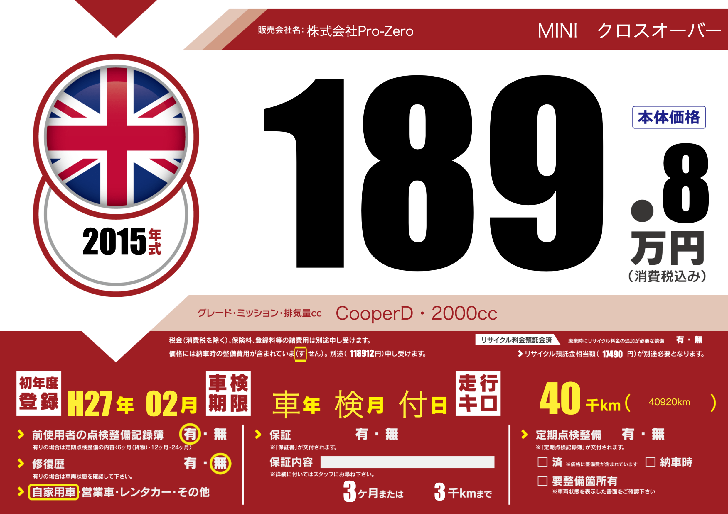 | 走行キロ | 4万km | ||