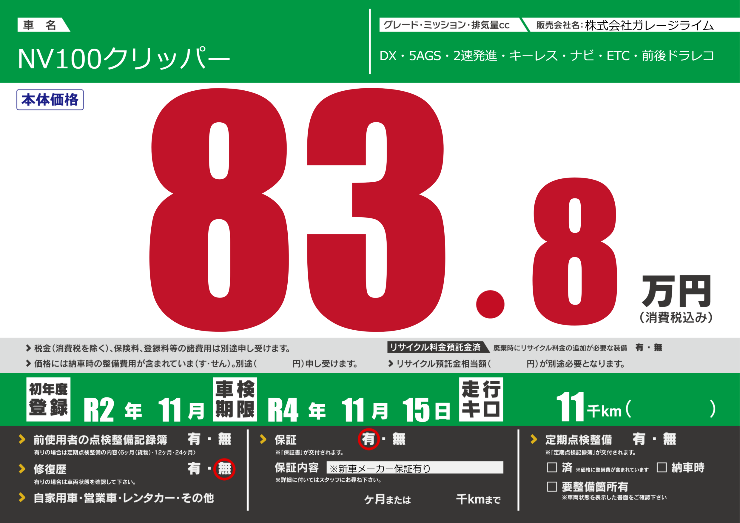 なし | 車検制限 | R4年11月15月 |