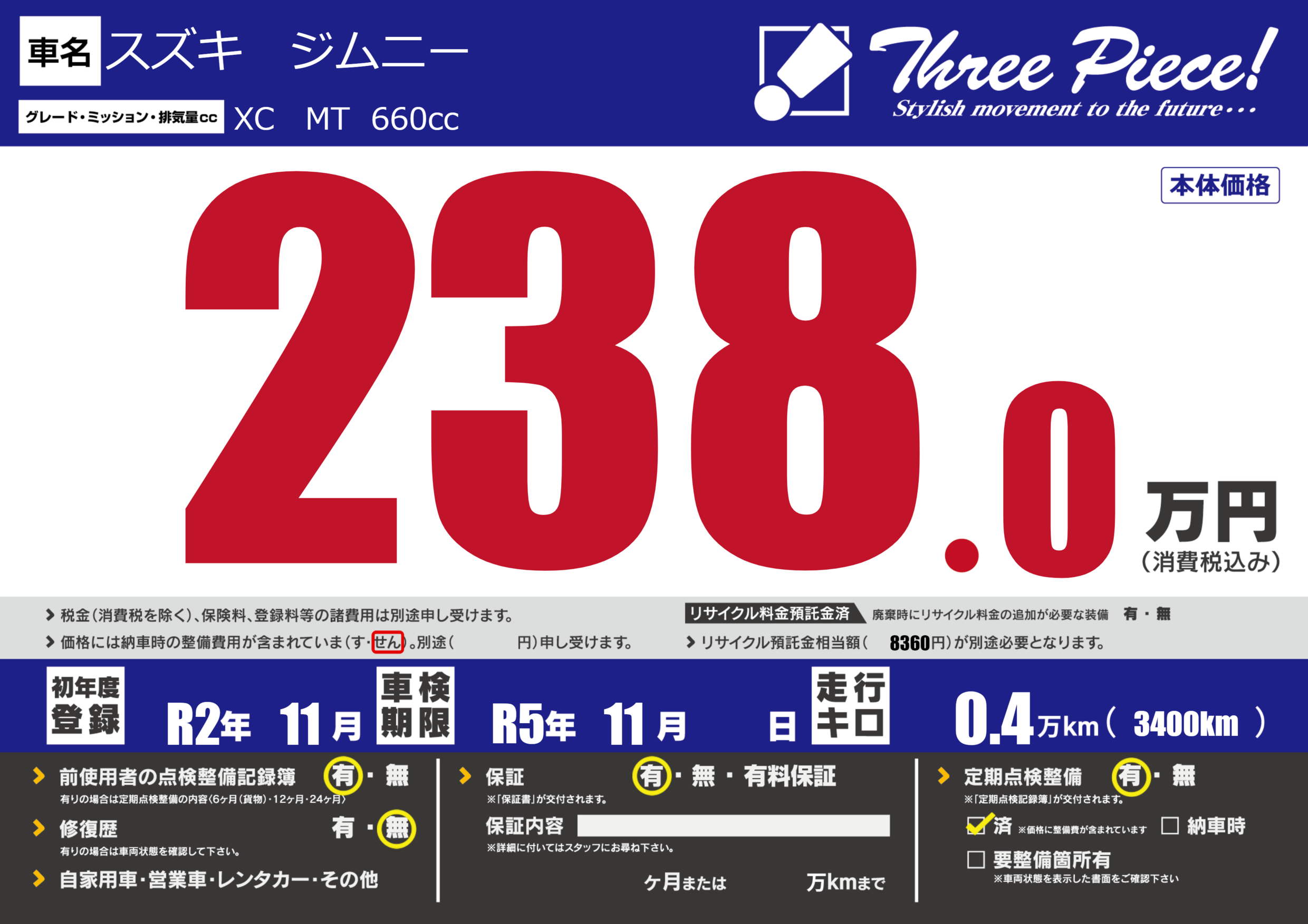 | 定期点検整備 | 定期点検整備あり 定期点検整備済み | ||