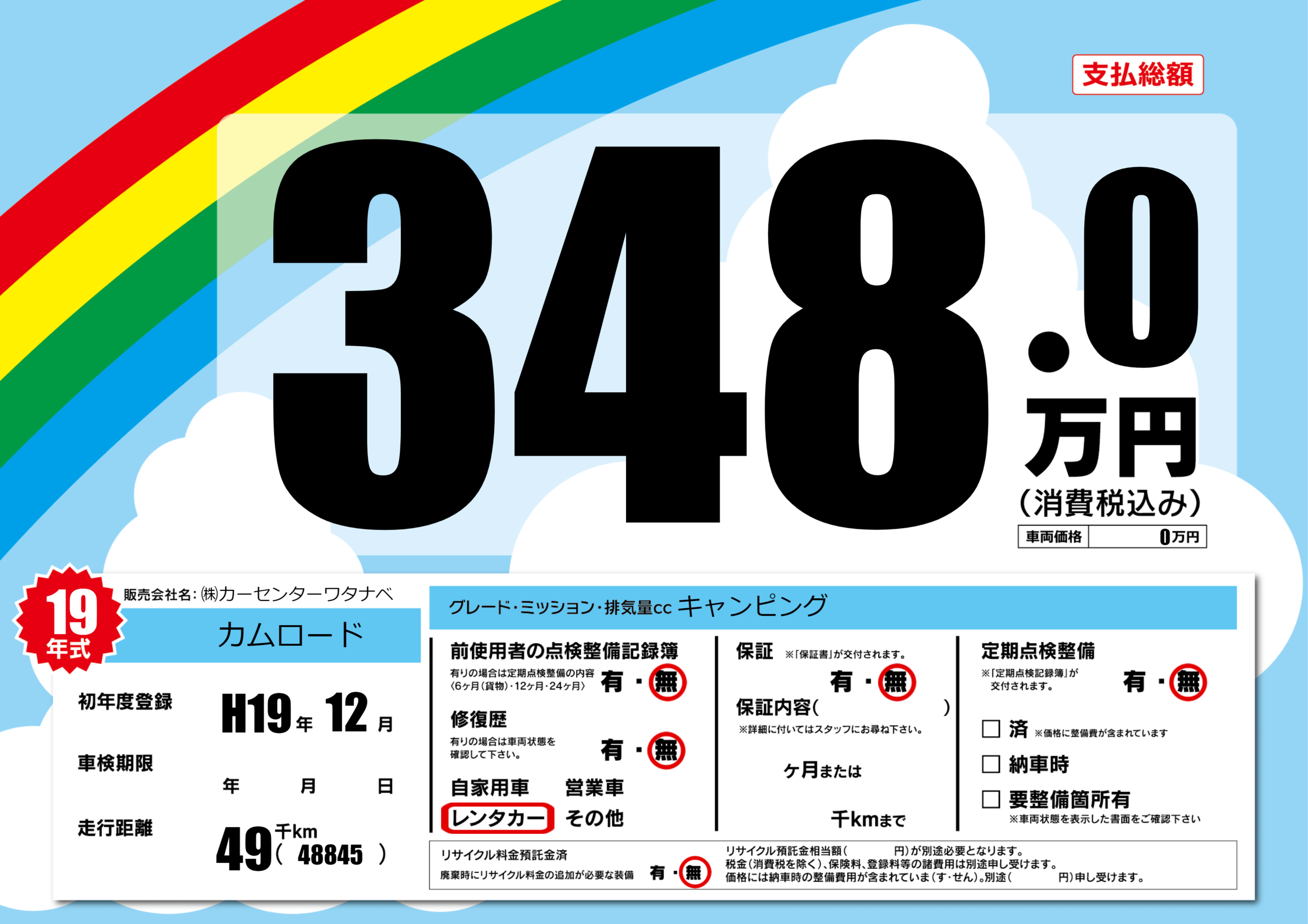| 定期点検整備 | 定期点検整備なし | ||