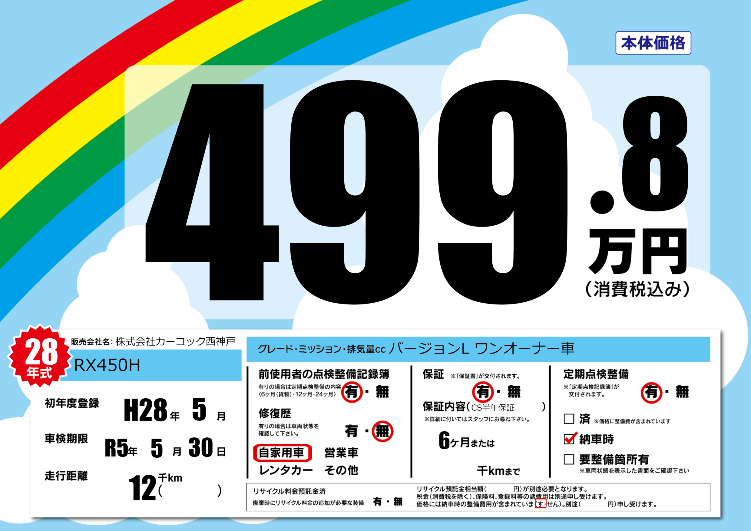 | 車名 | RX450H | グレード ミッション 排気量 |