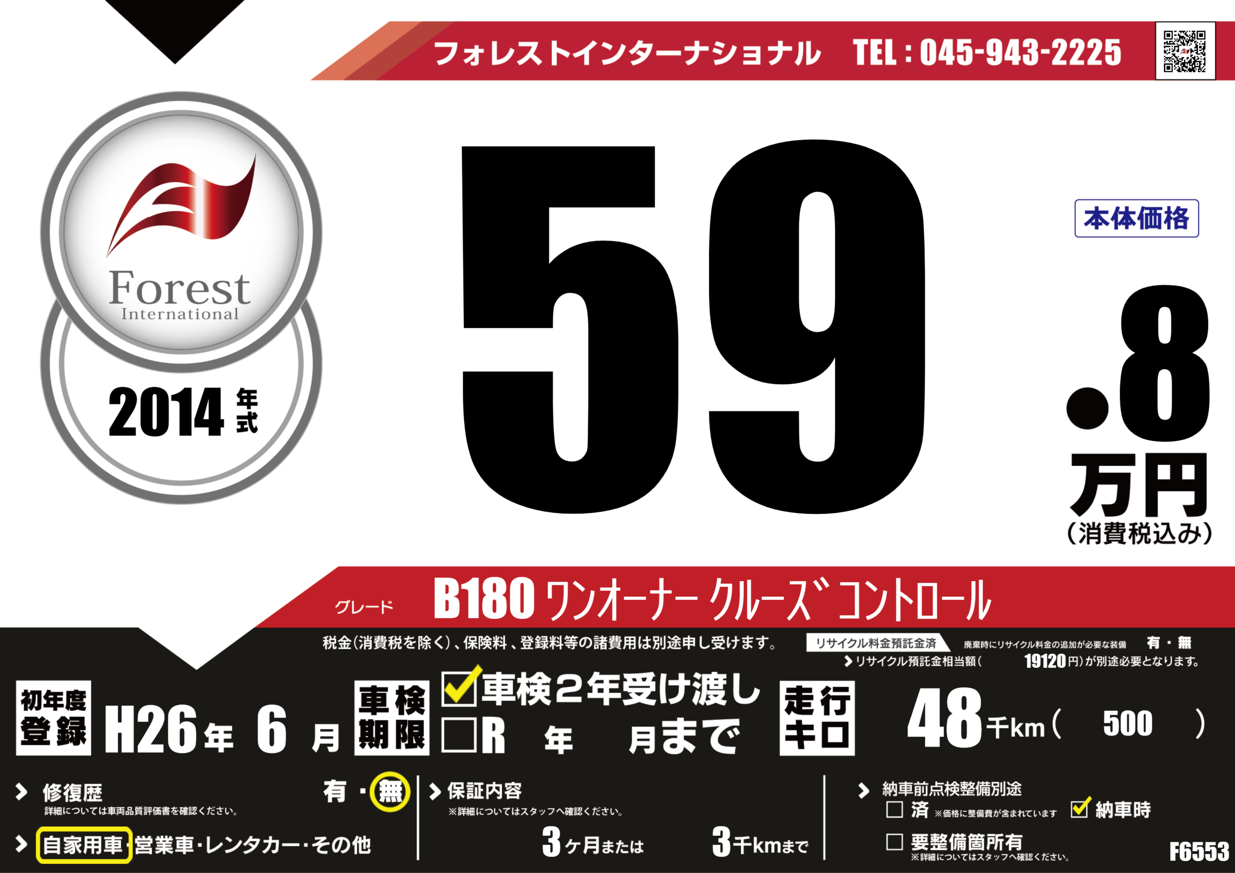 | 走行キロ | 4.8万km | 初年度登録 | H26年6月 |