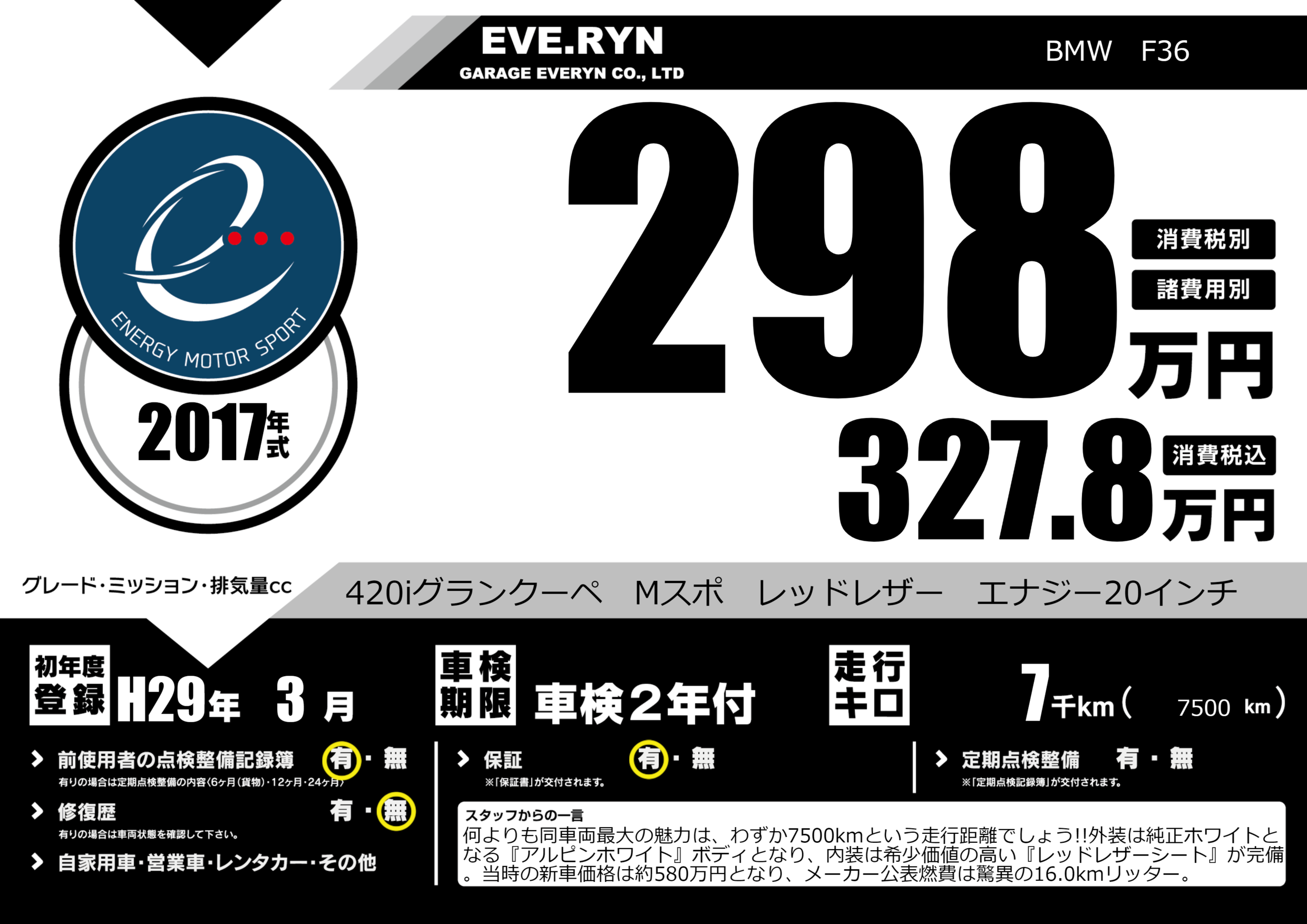 420iグランクーペ Mスポ レッドレザー エナジー20インチ |