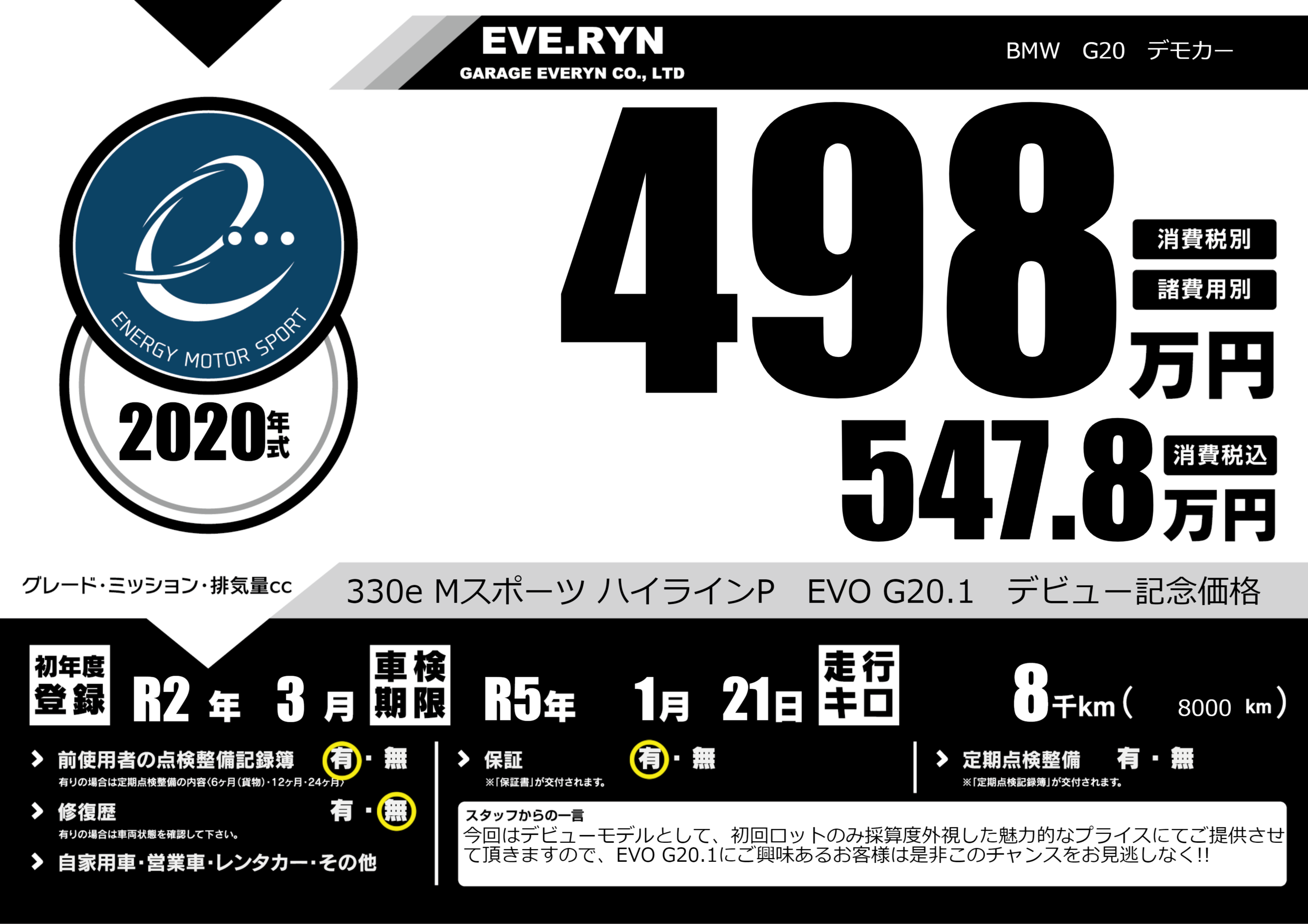 330e Mスポーツ ハイラインP EVO G20.1 デビュー記念価格 |