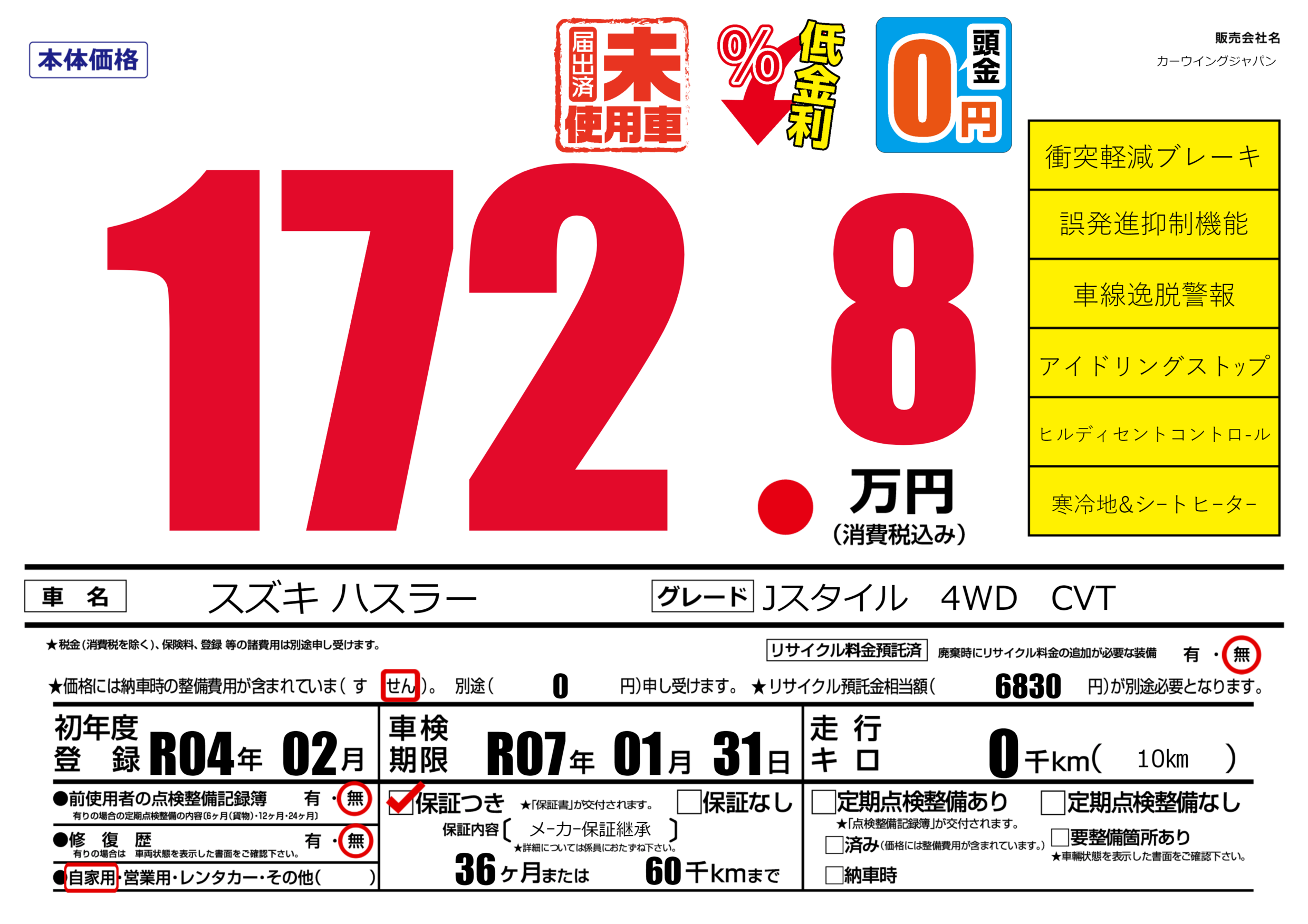 保証付き 保証内容( メーカー保証継承) 36ヶ月または(60)千kmまで |