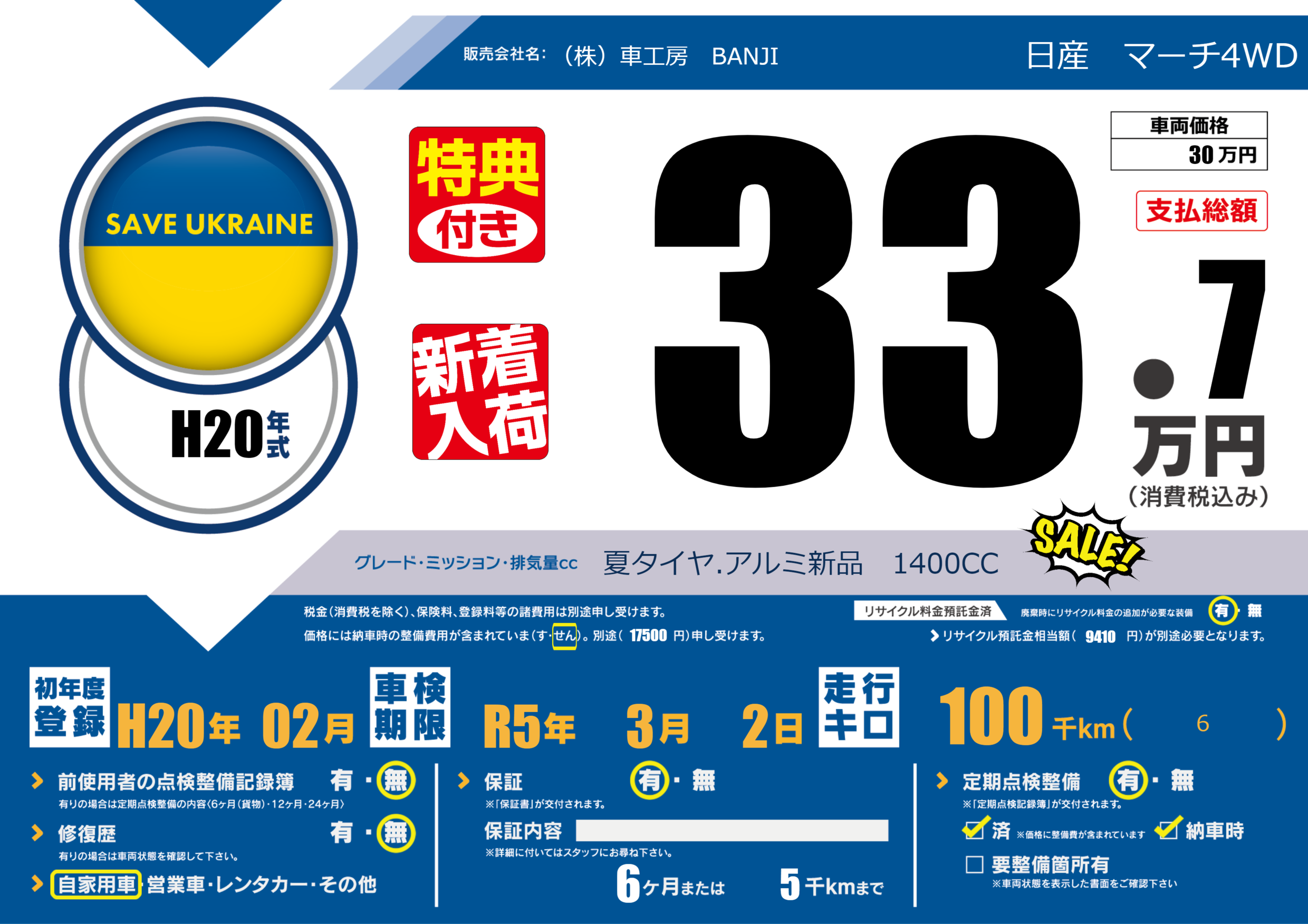| 車名 | 日産 マーチ4WD | グレード ミッション 排気量 |