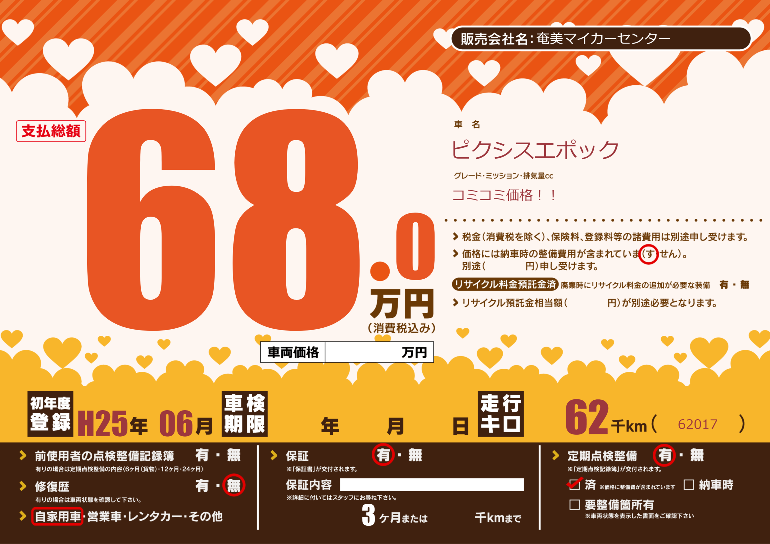 | 定期点検整備 | 定期点検整備あり 定期点検整備済み | ||