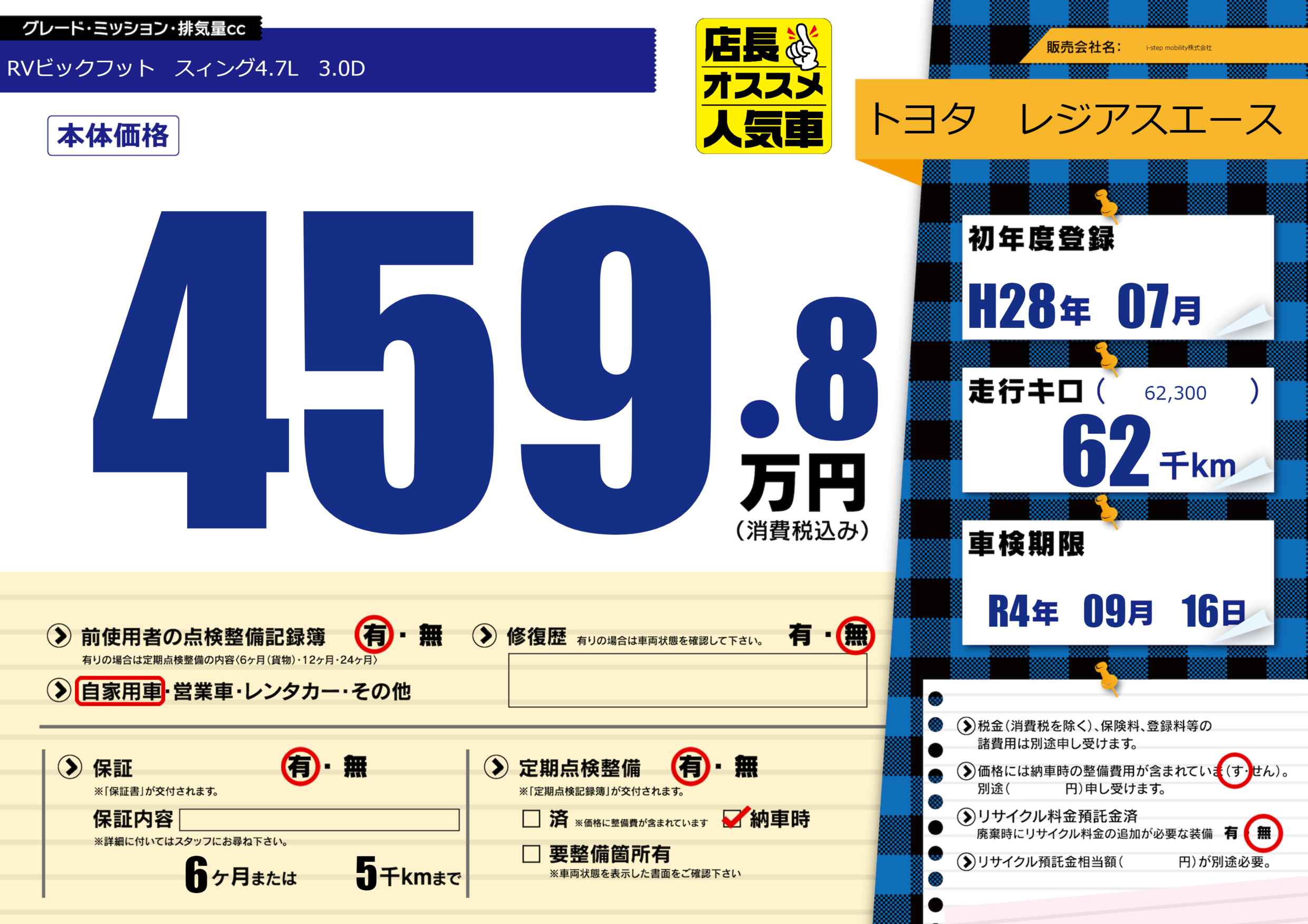 | 車検制限 | R4年 09月 16日 | ||