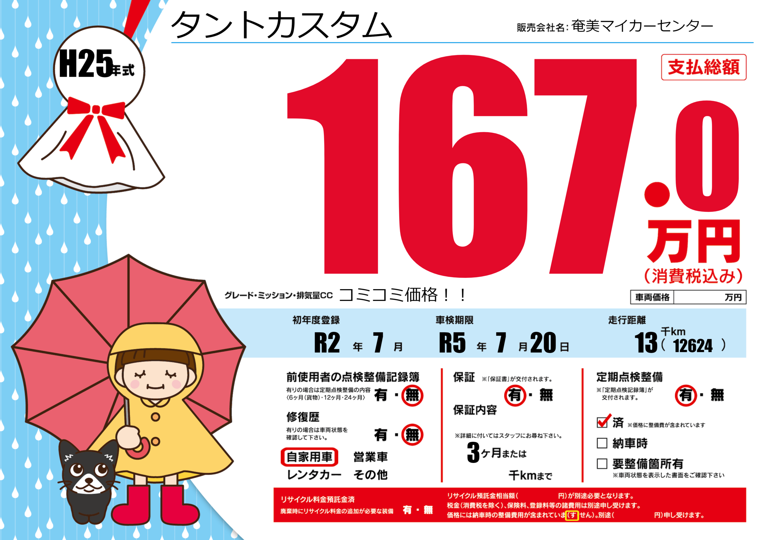 | 走行キロ | 1.3万km | 初年度登録 | R2年7月 |
