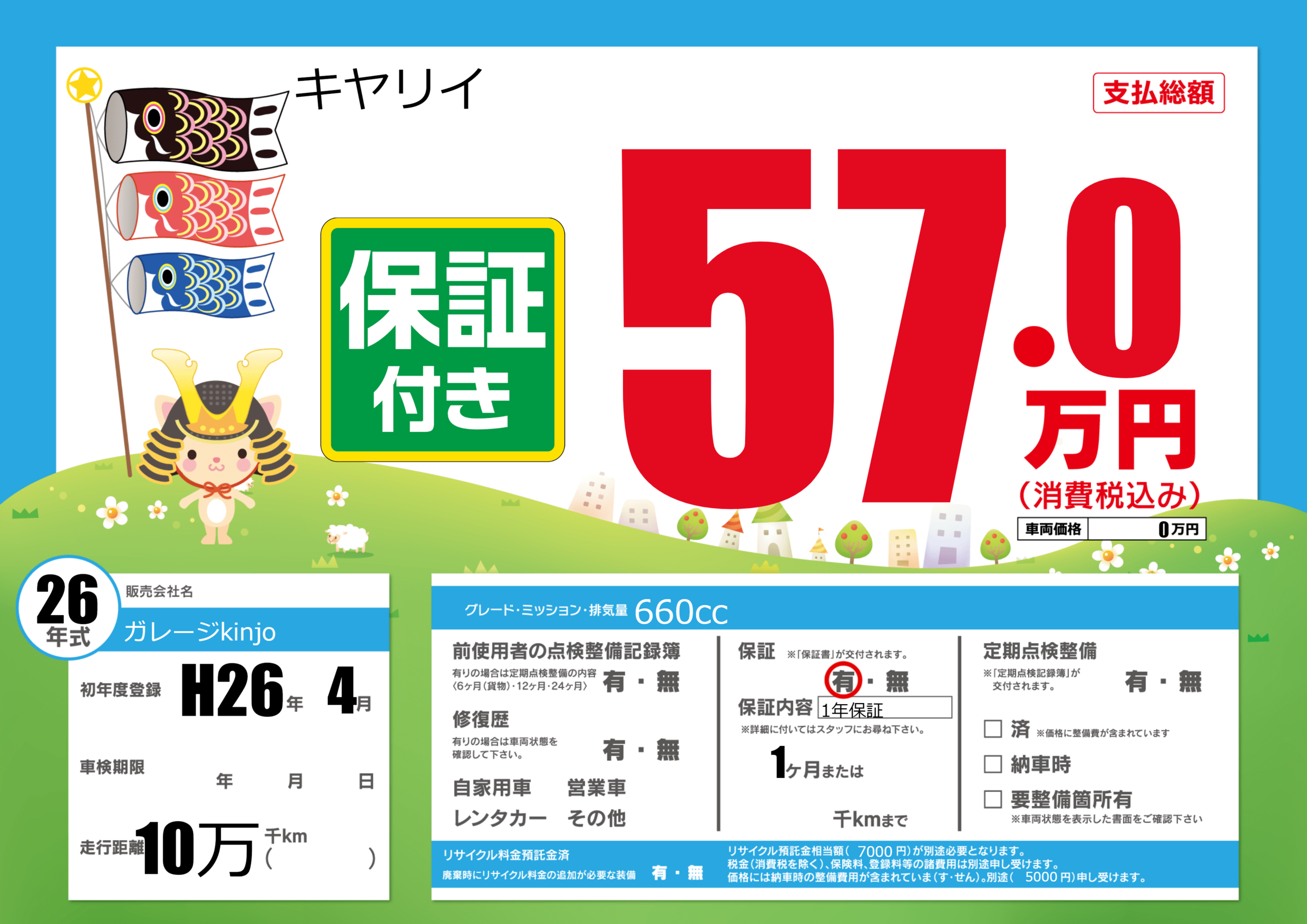 保証付き 保証内容(1年保証) 1ヶ月または()千kmまで |