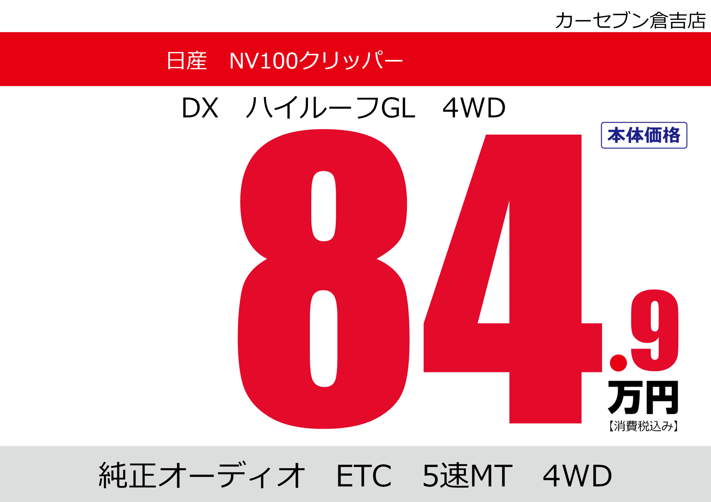 | 車名 | 日産 NV100クリッパー | グレード ミッション 排気量 |