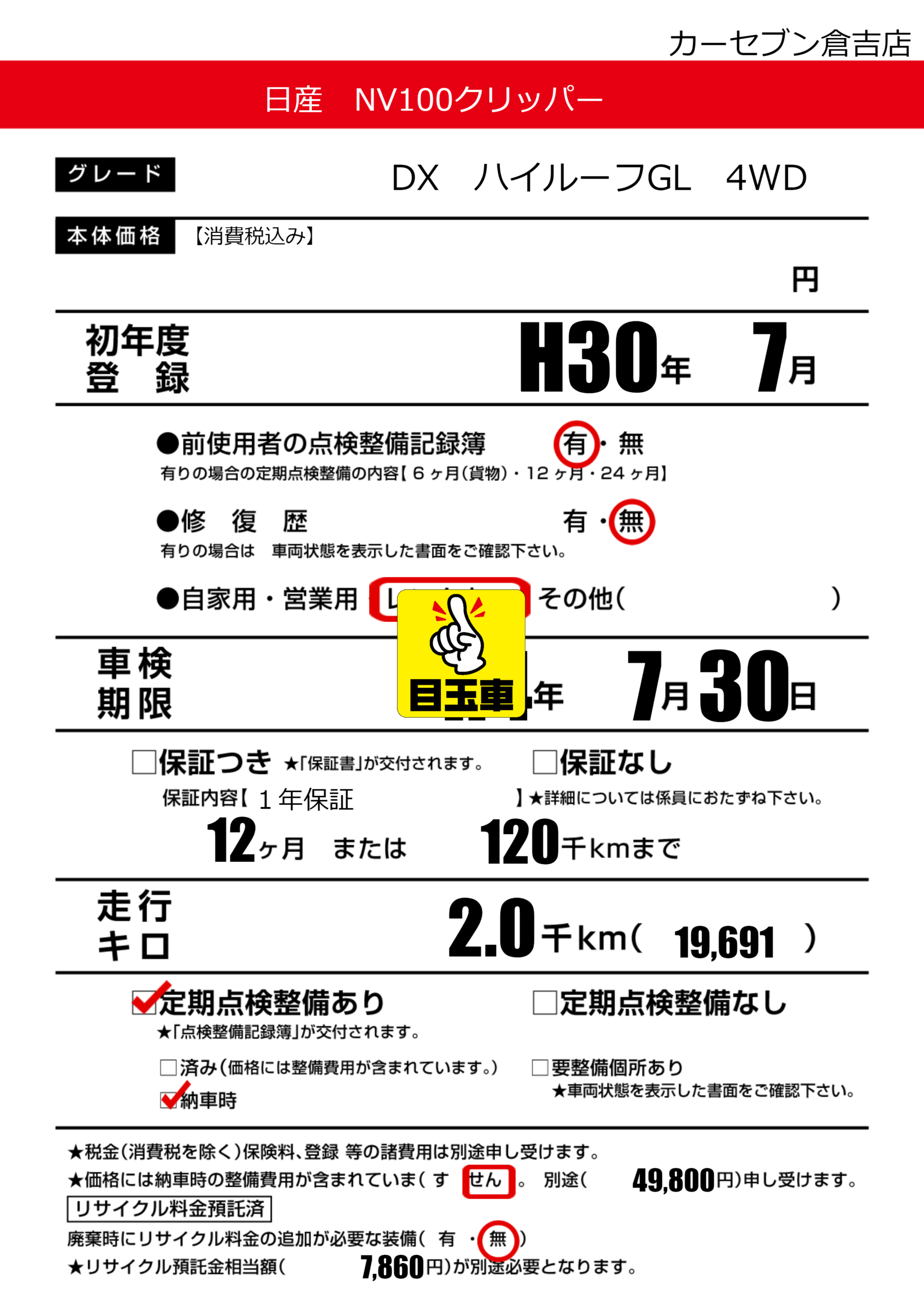 | 定期点検整備 | 定期点検整備あり 納車時あり | ||