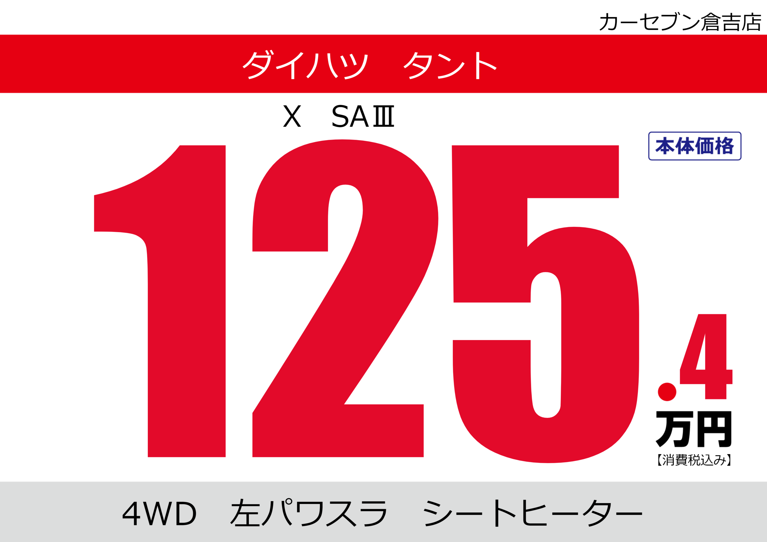 | 車名 | ダイハツ タント | グレード ミッション 排気量 |