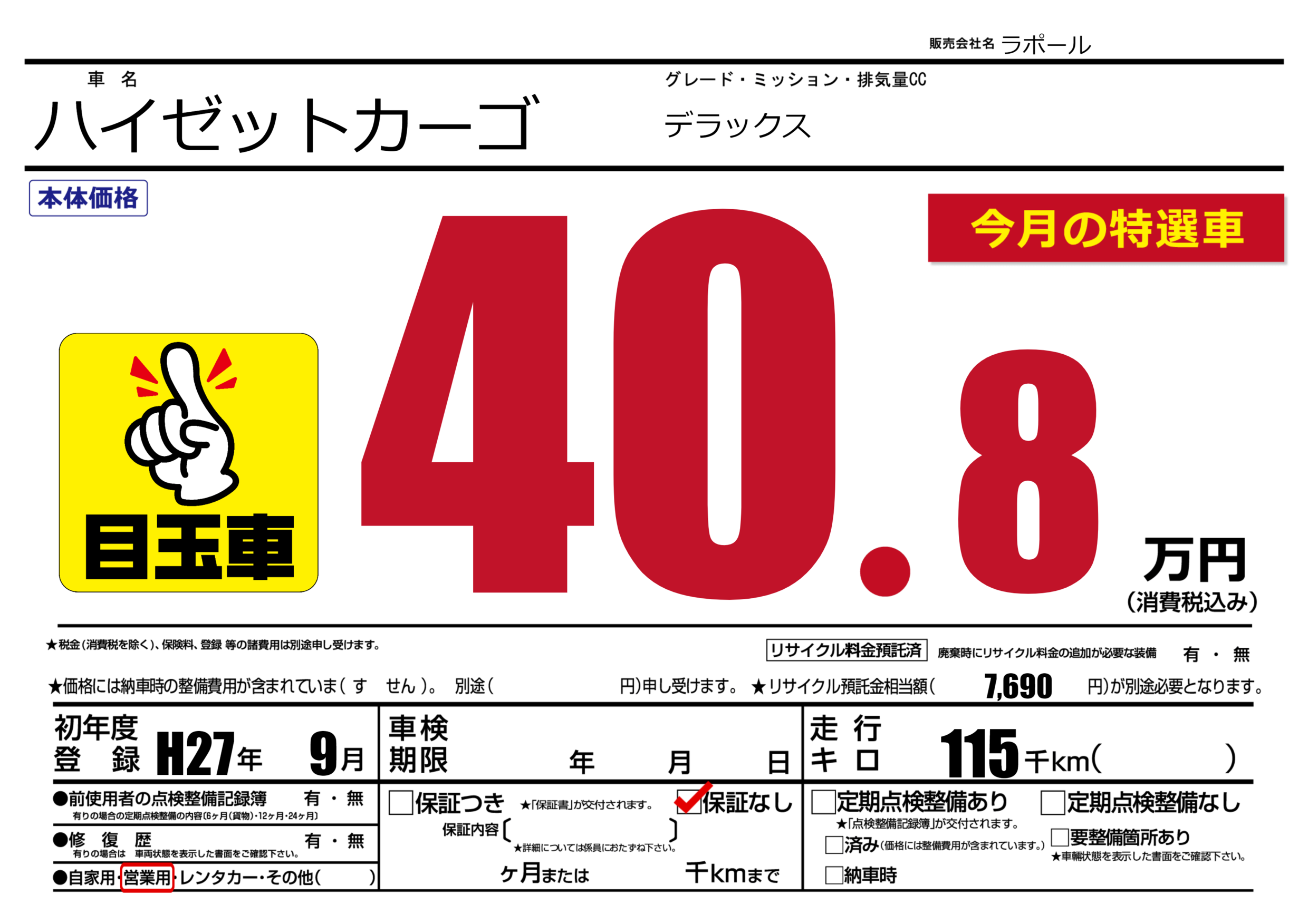 | メーカー | - | 種別 | 営業用 |